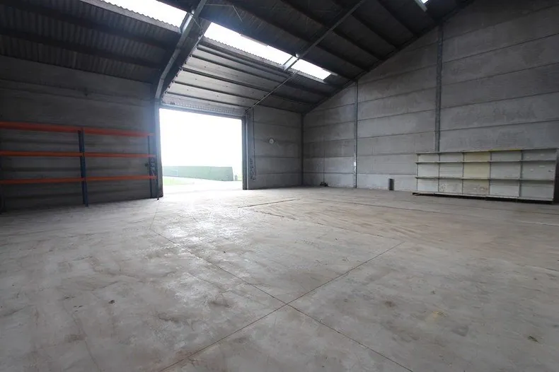 De totale oppervlakte van de loods is 255 m². Bestaande uit: loods 15 m lengte x 17 m breedte. De poort heeft een hoogte van 4,60 m en een breedte van 5,50 m. Elektriciteit voorzien. De onroerende voorheffing is inbegrepen in de huurprijs van 525 €/mnd. Direct beschikbaar.