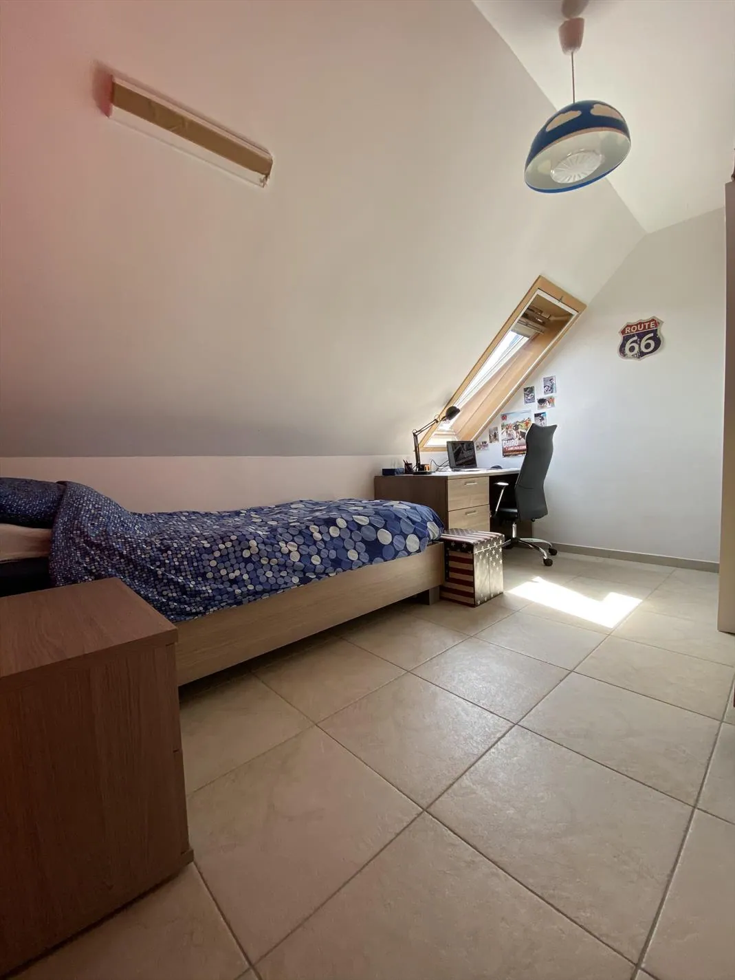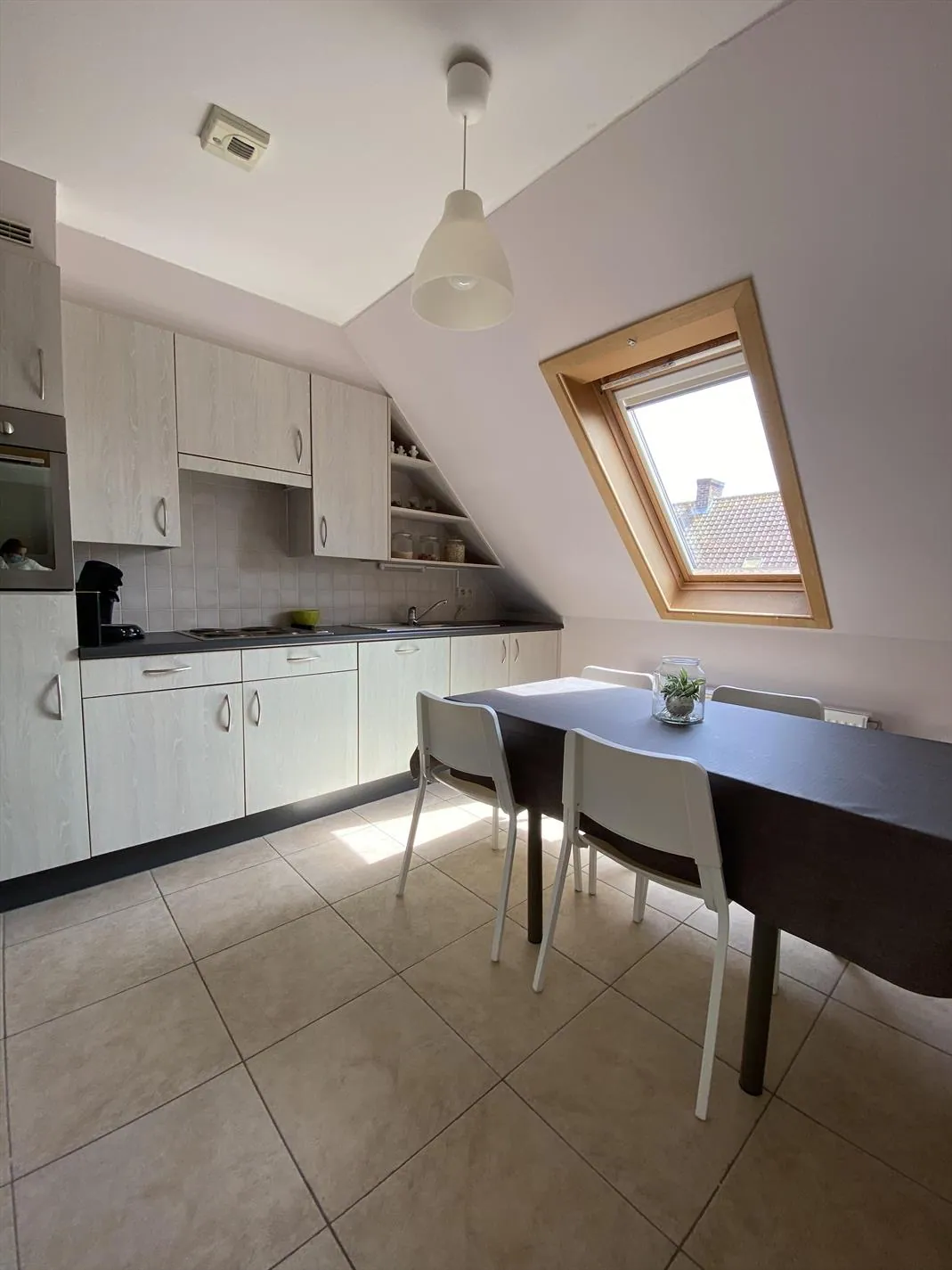 Dit duplex appartement bestaat uit: inkomhal - afzonderlijk toilet - living - keuken - terras - slaapkamer 1 - badkamer en op de bovenverdieping 2 slaapkamers - berging - toilet. Er is ook een garage aanwezig met achterliggend een terras. Geen huisdieren toegelaten. Vrij vanaf 1/09/2021. Huurprijs 590 €/mnd + 50 €/mnd syndickosten.