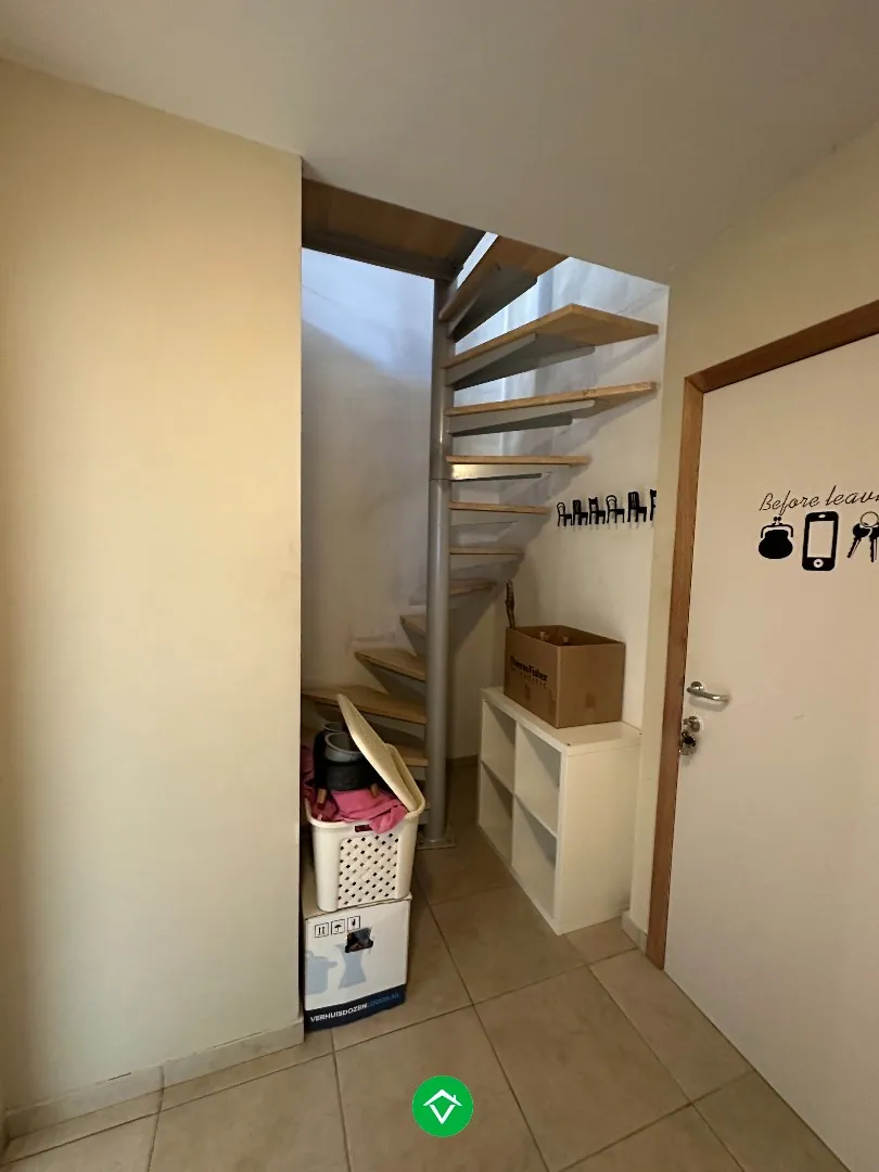Dit duplex appartement bestaat uit: inkomhal - afzonderlijk toilet - living - keuken - terras - slaapkamer 1 - badkamer en op de bovenverdieping 2 slaapkamers - berging - toilet. Er is ook een garage aanwezig.