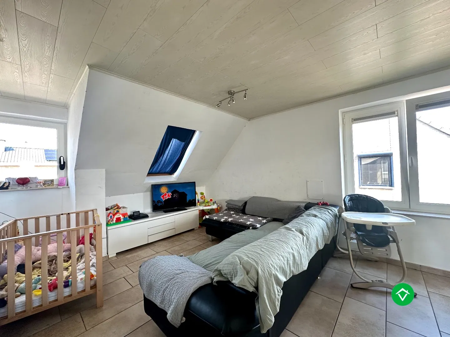 Op de tweede verdieping zijn er nog twee slaapkamers, in open verbinding met elkaar, en een afgewerkte zolderruimte.