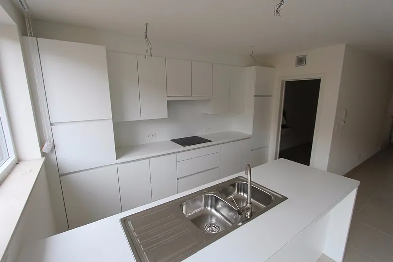 Ruim en mooi ingericht energiezuinig nieuwbouwappartement in een hedendaagse moderne trend comform de nieuwste normen en isolatienormen. Het appartement is instapklaar en overal voorzien van verlichtingsarmaturen, de ramen zijn voorzien van dag en nacht lamellen gordijnen. Alle muren en plafonds reeds geschilderd. Het appartement bestaat uit: inkomhal met dressingruimte -grote zuidgerichte living met geïntegreerde keuken en keukeneiland - groot individueel zongericht terras achteraan - ruime berging - technische ruimte - toilet met hangtoilet en handwasser - badkamer met inloopdouche / badkamermeubel en kasten - 2 slaapkamers. Mogelijkheid tot bijhuren van een garage. Geen huisdieren toegelaten. Vrij vanaf 01/01/2018. Huurprijs 670 €/mnd (exclusief 30 €/mnd syndickosten).
