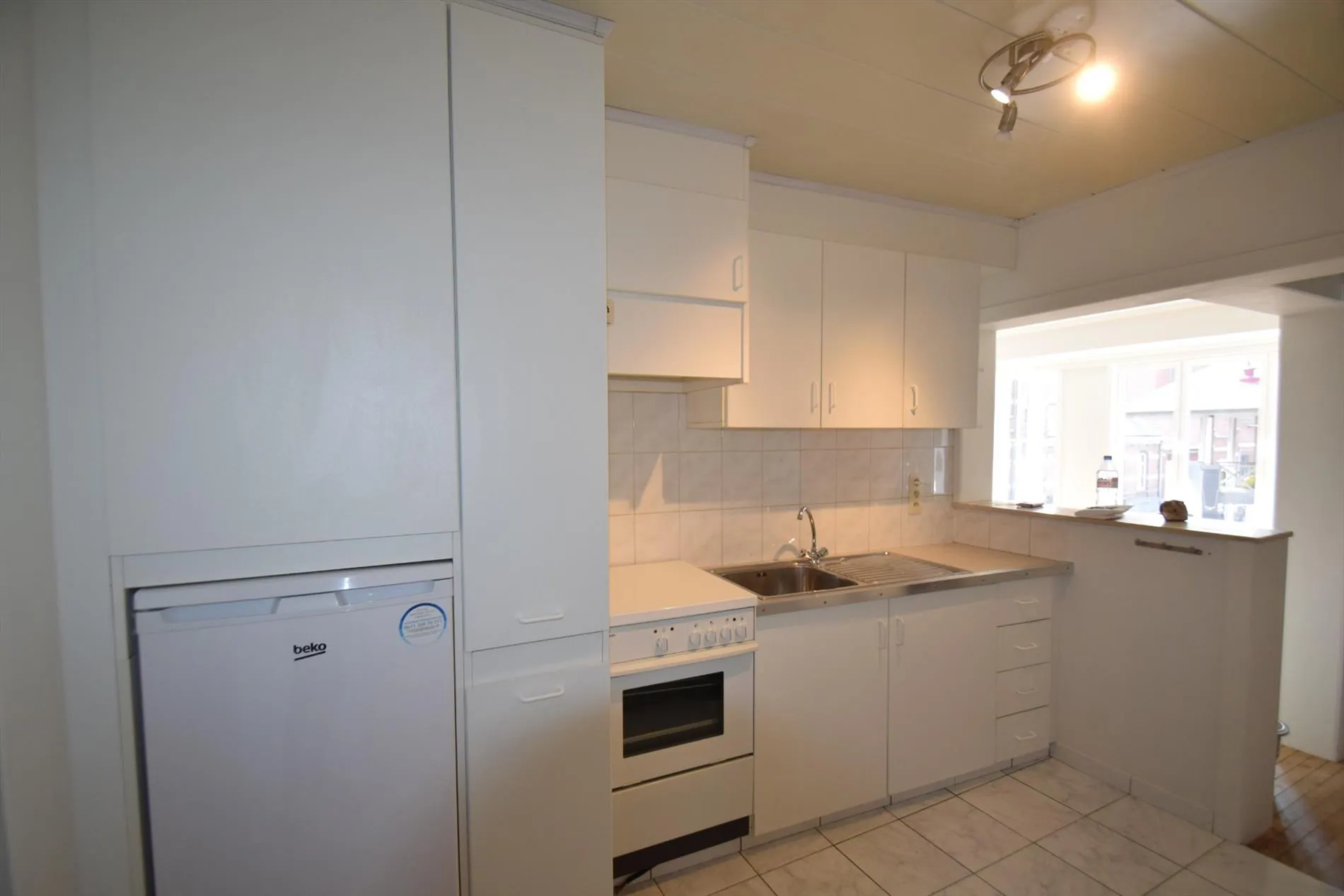 In het volle centrum nabij winkels gelegen appartement met ruime living, ingerichte halfopen keuken, 1 ruime slaapkamer, toilet, douchekamer, terrasje met berging. Beneden ruime fietsenplaats. Vrij vanaf 1 september Geen huisdieren. CV aardgas. Appartement is volledig netjes herschilderd. Voor bezoek, bel 0493 25 06 45 of mail thierry@vastgoedsinnaeve.be