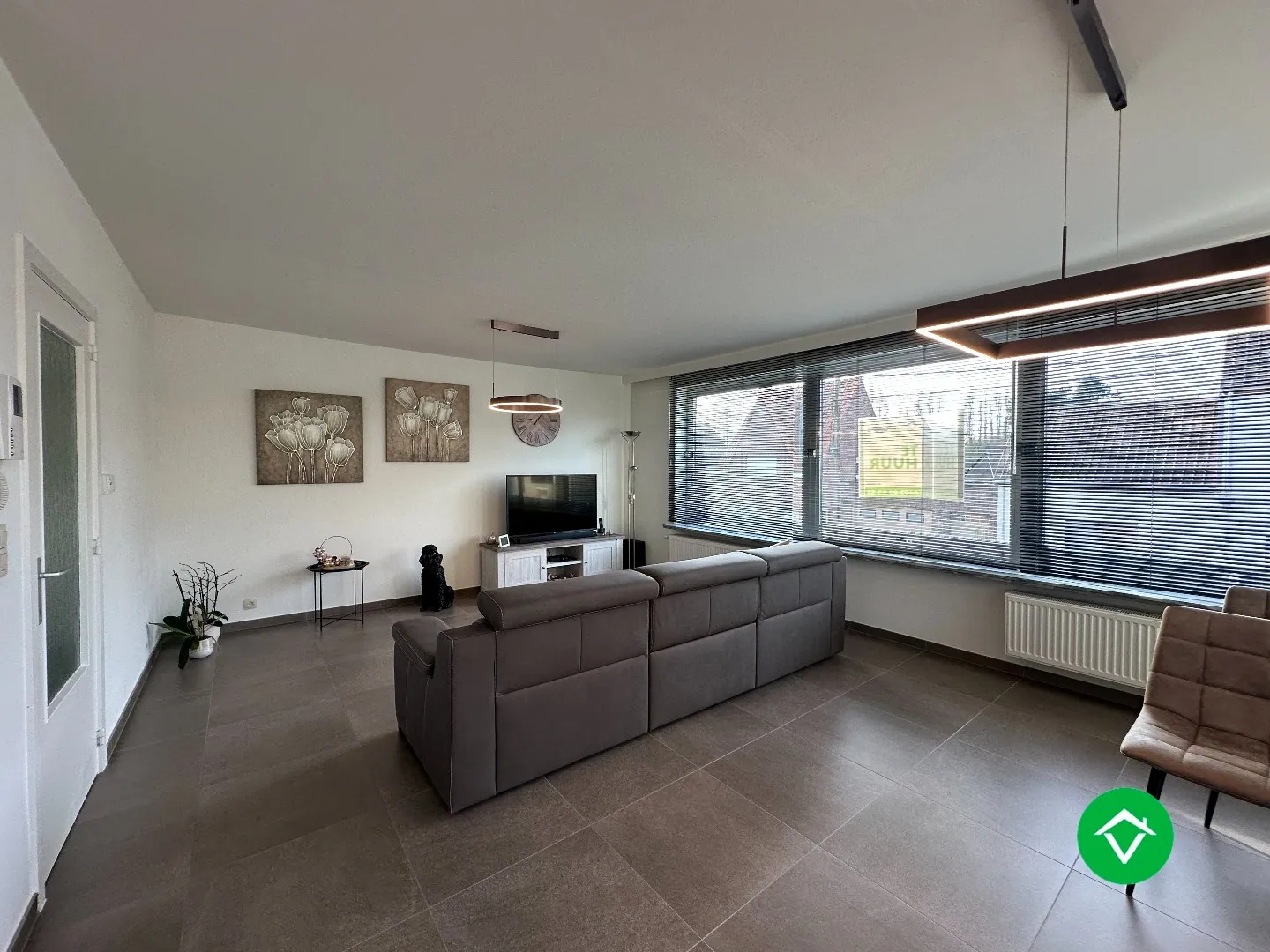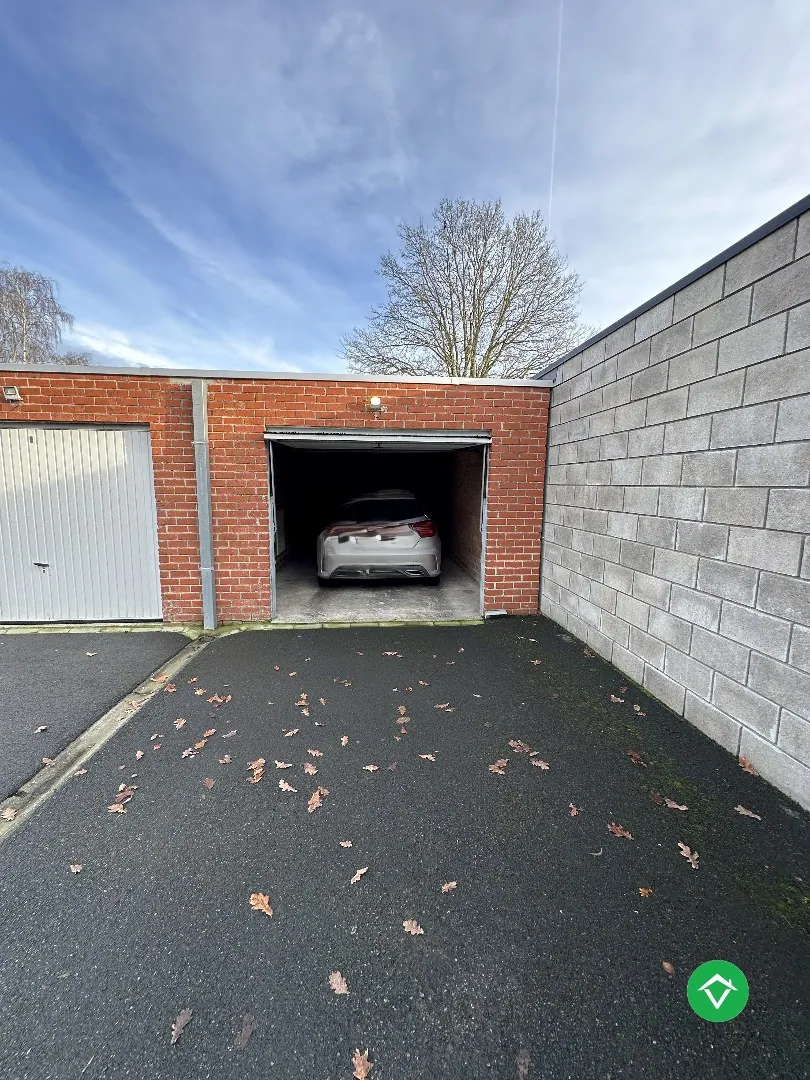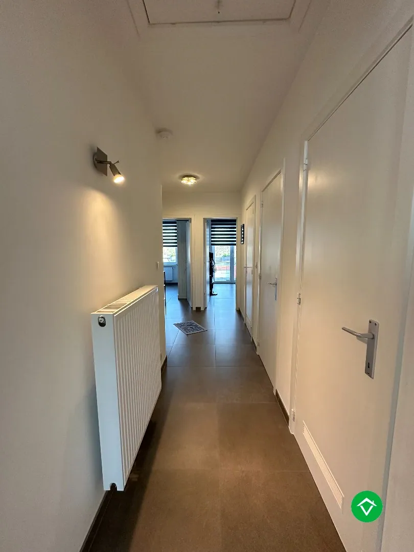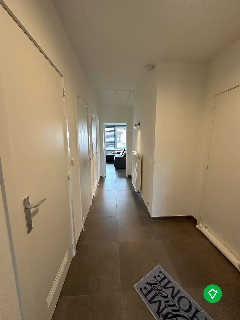 Ruim appartement op de 1ste verdieping, bestaande uit: inkomhal - grote leefruimte - open keuken met inbouwtoestellen (frigo en vaatwas) - berging/wasplaats - afzonderlijk toilet - badkamer met inloopdouche - 2 slaapkamers - groot terras - garage met automatische poort - autostandplaats. Vrij 1/04/2026