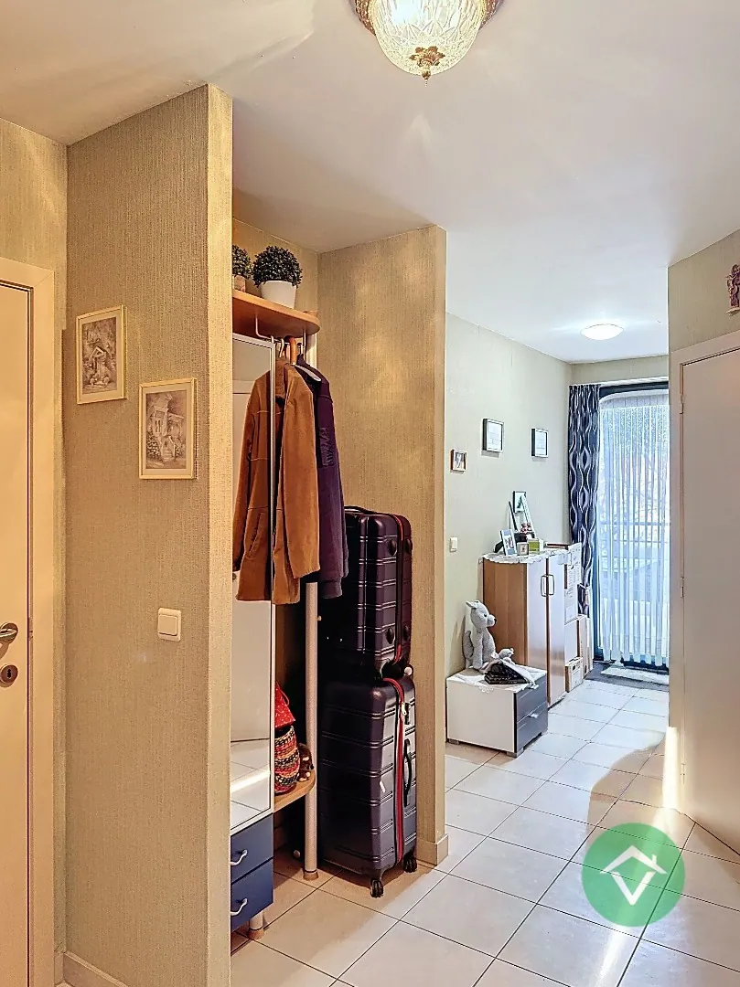 Dit appartement is gelegen op de 2de verdieping en bestaat uit: lift - inkomhal - living met aansluitend terras - keuken - berging/wasplaats - toilet - badkamer - 2 slaapkamers - groot terras - extra privé-berging op het gelijkvloers. Gemeenschappelijke fietsenberging.