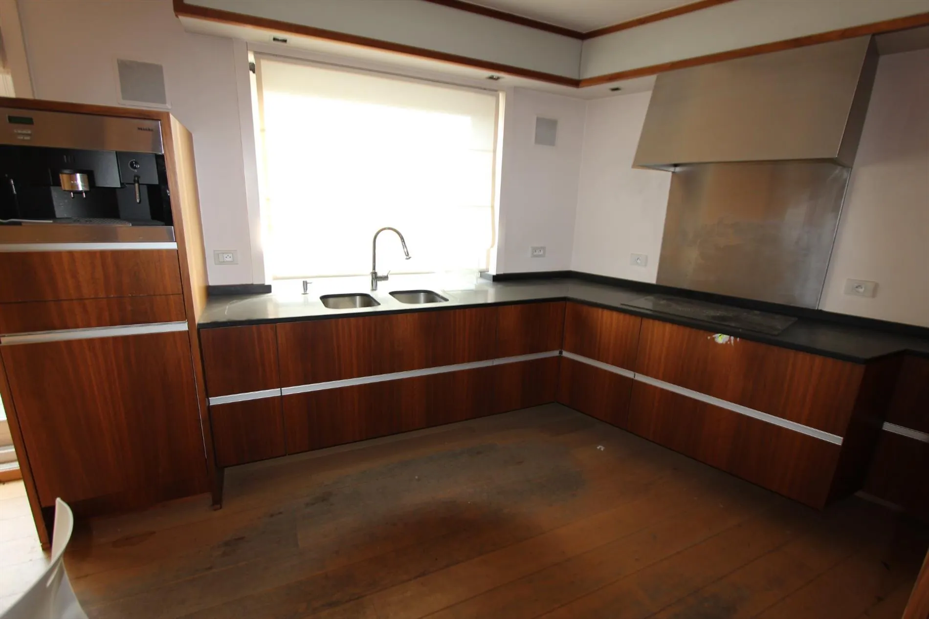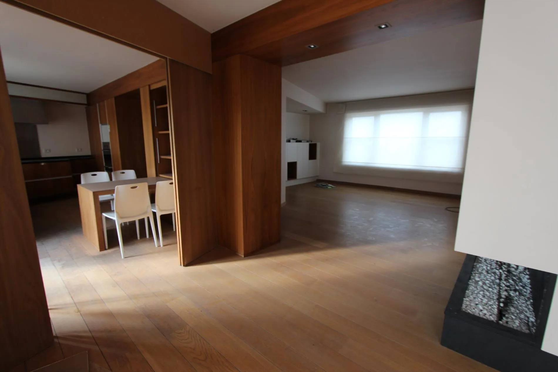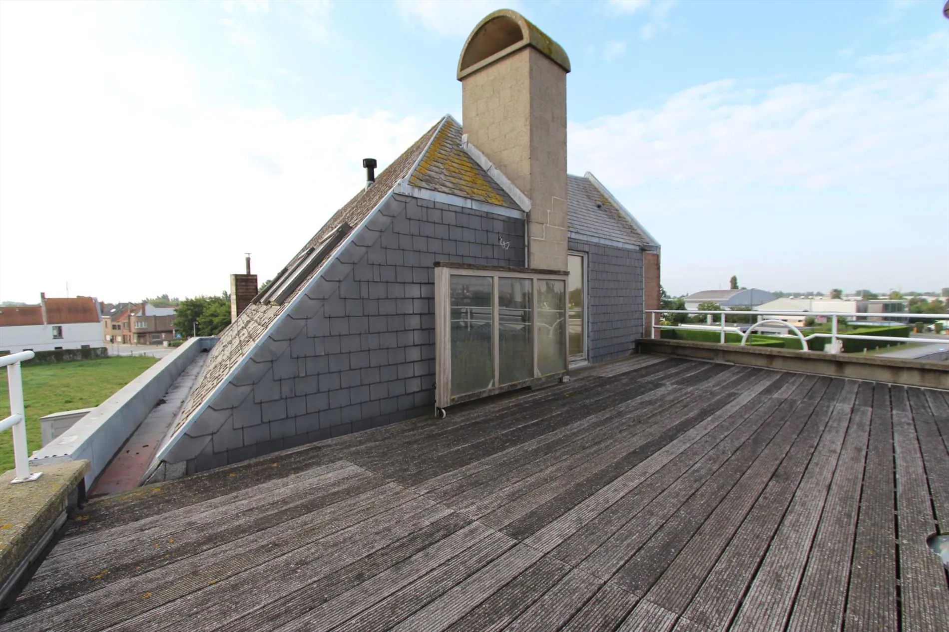 Dit appartement bestaat uit: hall - toilet - living - keuken - groot terras met aan beide kanten opbergruimten - 4 slaapkamers - bureau - badkamer - zolder - zeer groot dakterras. Verwarming op aardgas. Huurprijs 725 €/mnd.