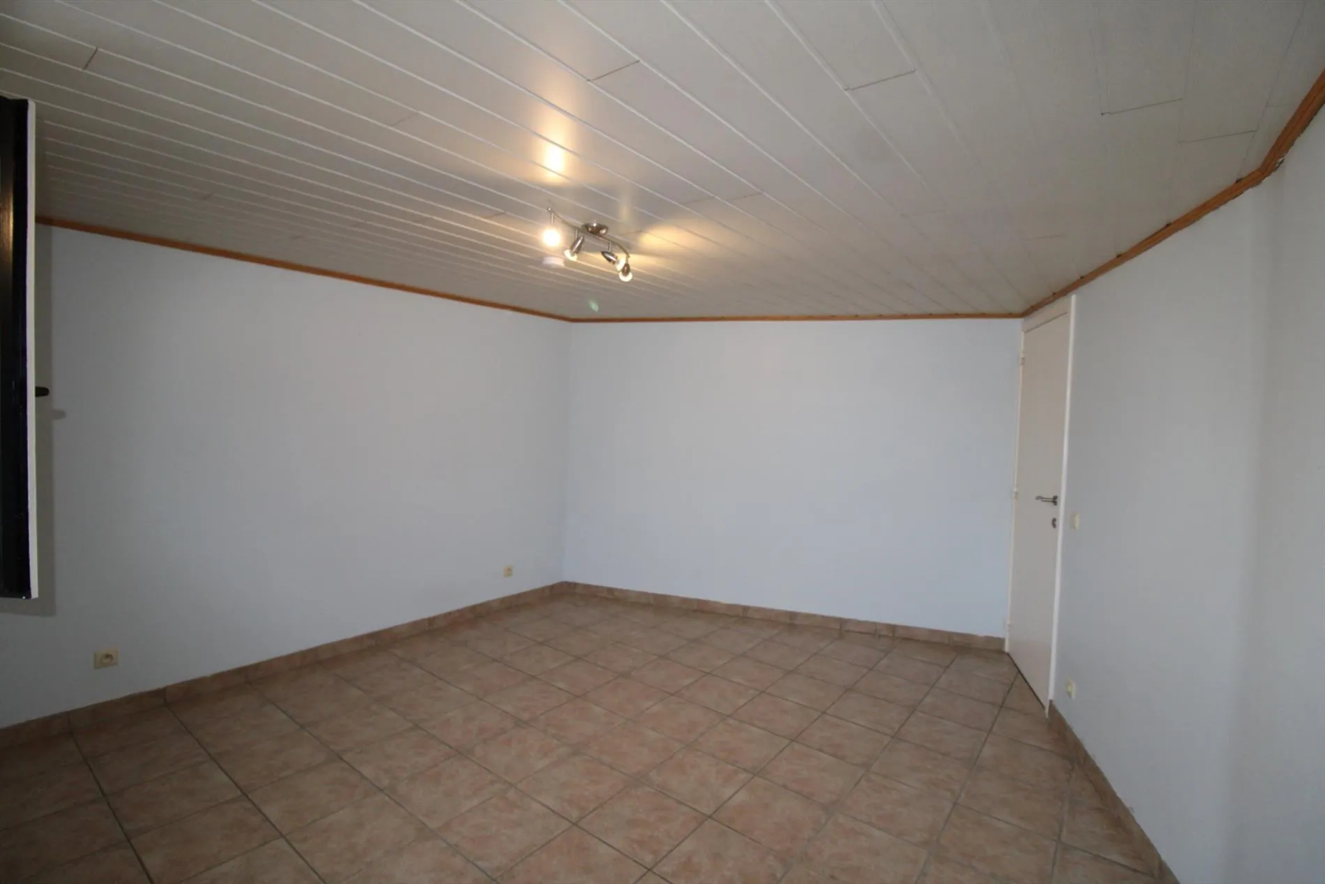 Op de eerste verdieping hebben we dan de ruime slaapkamer die toegankelijk is via een vaste trap.