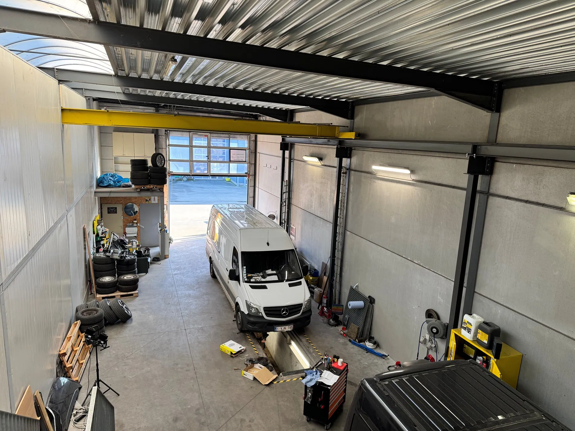 Deze loods kan dienst doen voor werkruimte en/of opslagruimte en is instapklaar. Er is een zoldering en toilet voorzien. Onroerende voorheffing ten laste van de huurder.