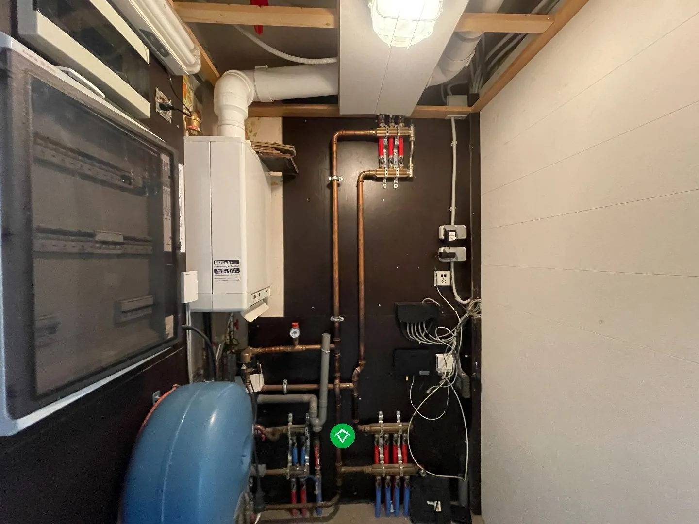 De indeling is als volgt: inkomhal - living - keuken - 3 slaapkamers - badkamer - toilet - tuin met twee tuinhuizen en aparte garage. Ook is er voor de blok nog een parkeerplaats inbegrepen.