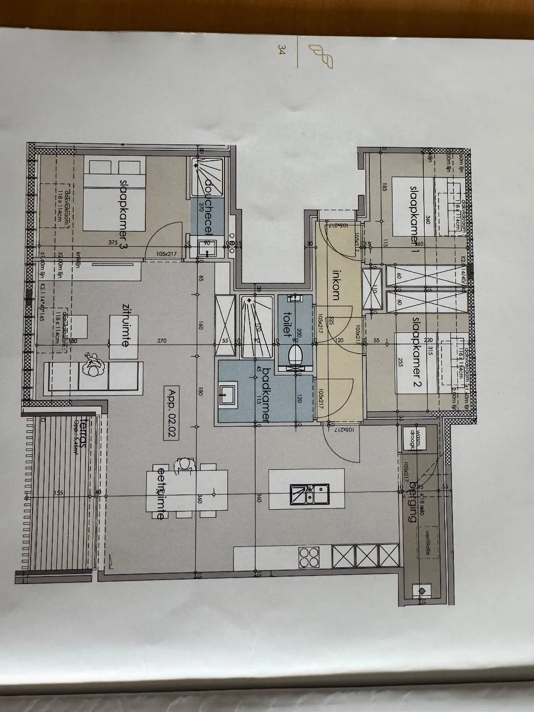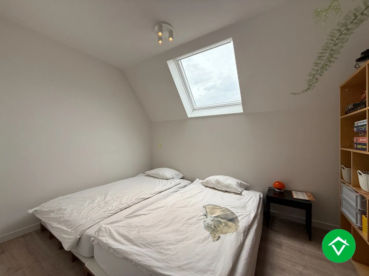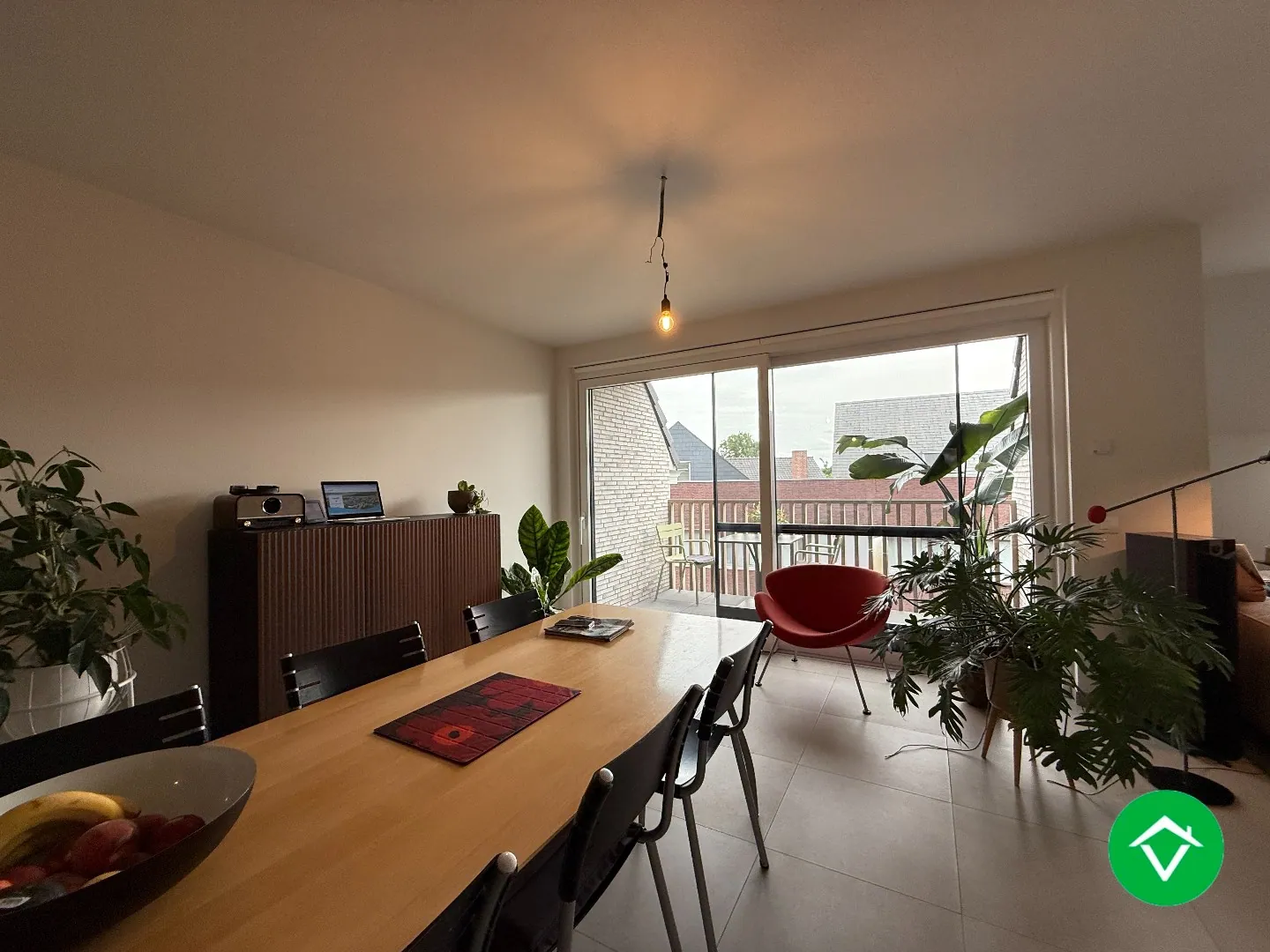 Het appartement zelf: inkomhal - apart toilet - twee slaapkamers - badkamer met douche en meubel - uitgeruste keuken met kwaliteitsvolle materialen en apparaten - wasberging/technische ruimte - eetplaats - zonnig terras - living - aansluitend 3e slaapkamer met dressing! Autostaanplaats met afzonderlijke, privé (fiets)berging.