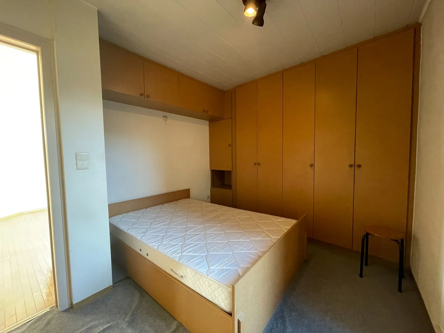 De indeling is als volgt: gemeenschappelijke inkomhal - trap - inkomhal - ruime 2-delige living - aparte keuken - slaapkamer met vast bed - badkamer met bad en toilet - dakterras. Kelderberging is ook inbegrepen.