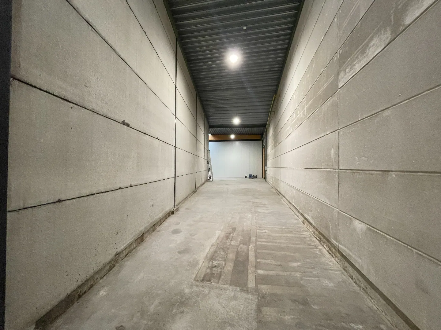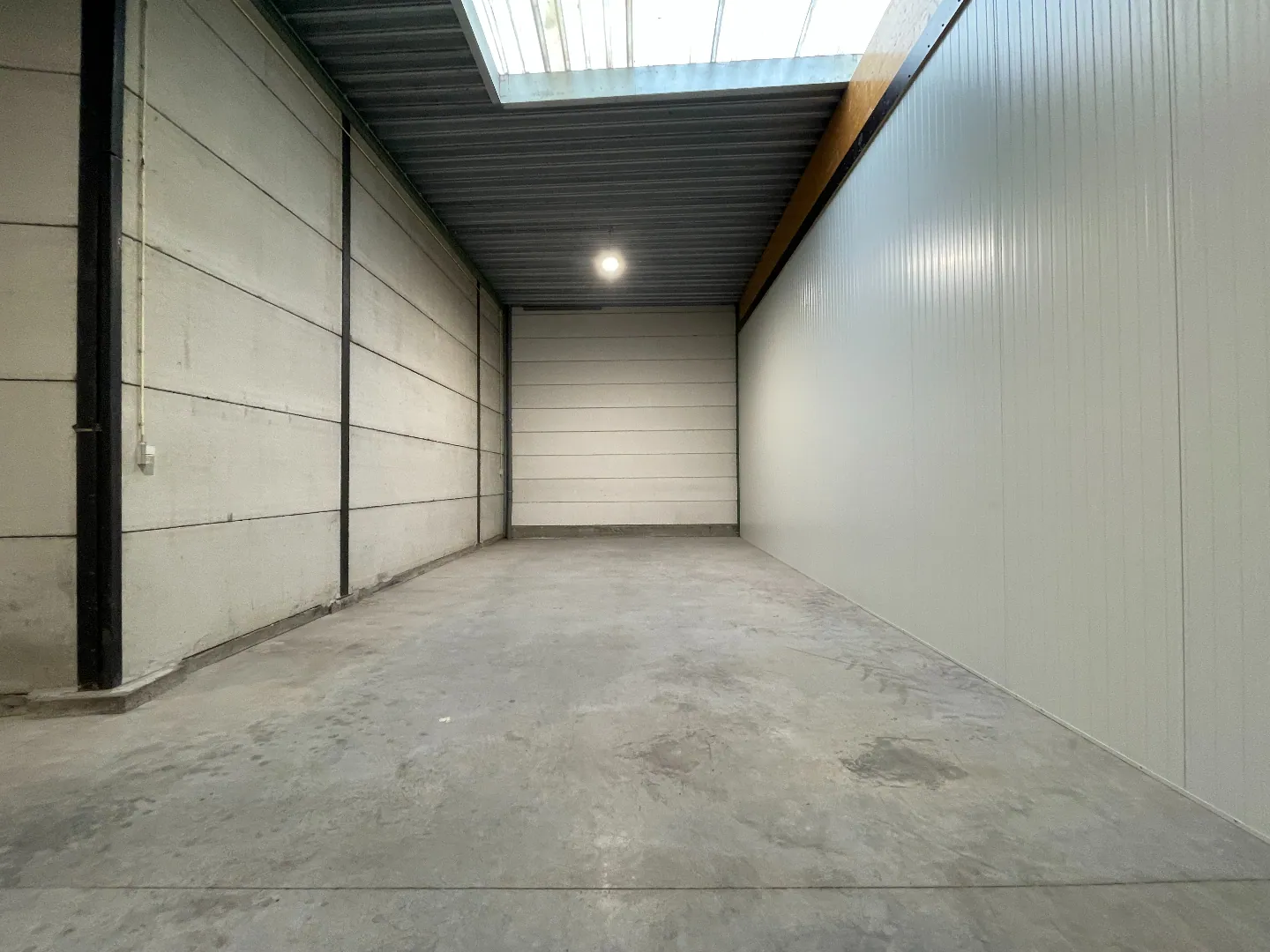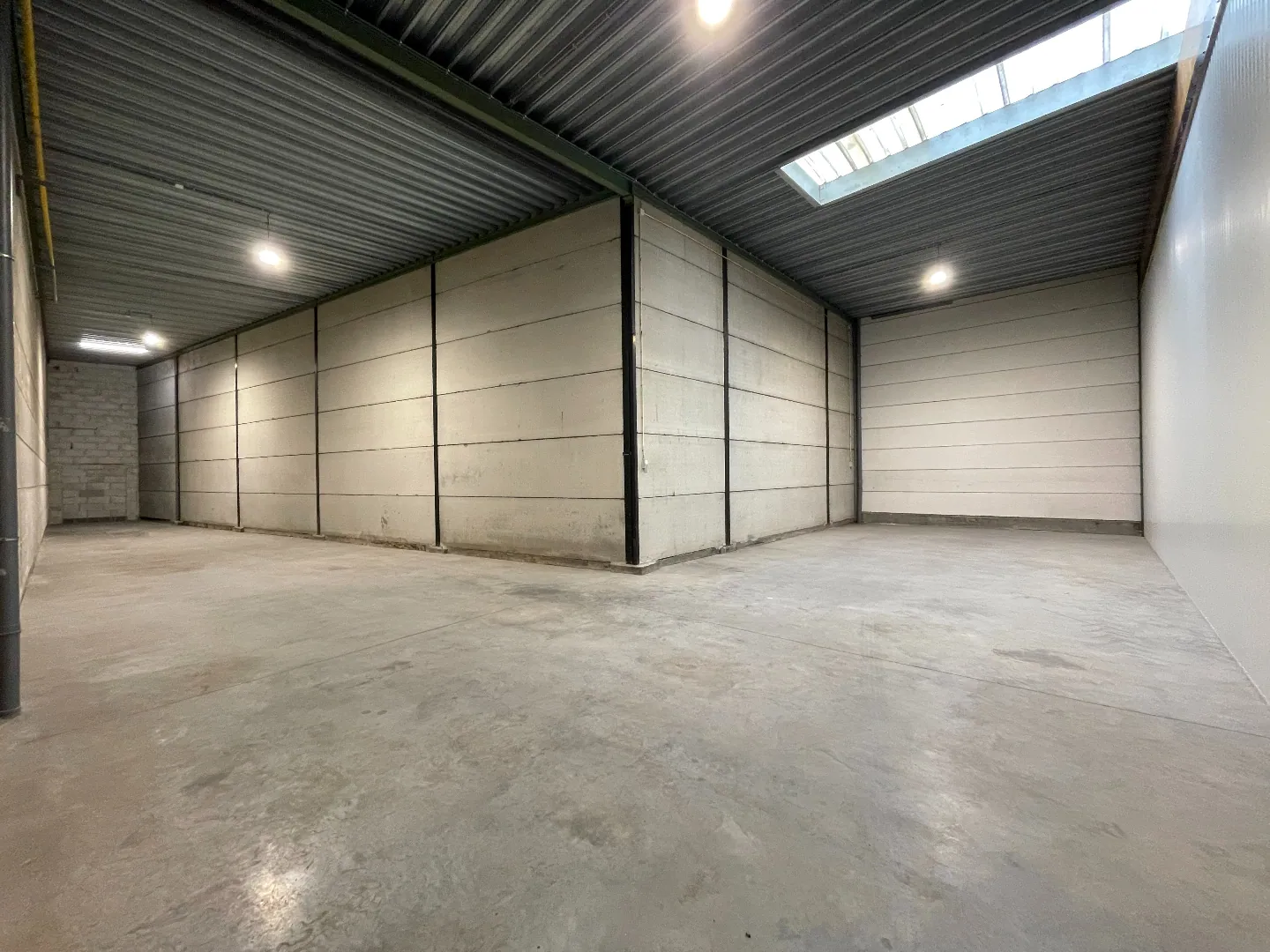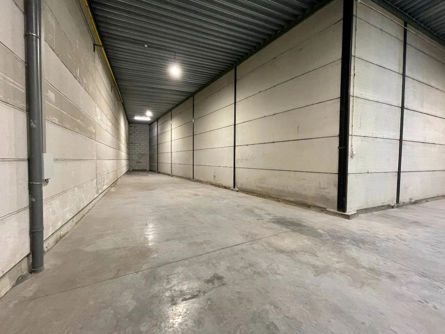 De hoogte van de loods is 6m, houten toegangspoort en algemene sectionale toegangspoort (hoogte 3.8m, breedte 2.6m) 2 parkeerplaatsen, gepolierde beton, led-verlichting en lichtkoepel. Geen water en geen drijfkracht aanwezig.