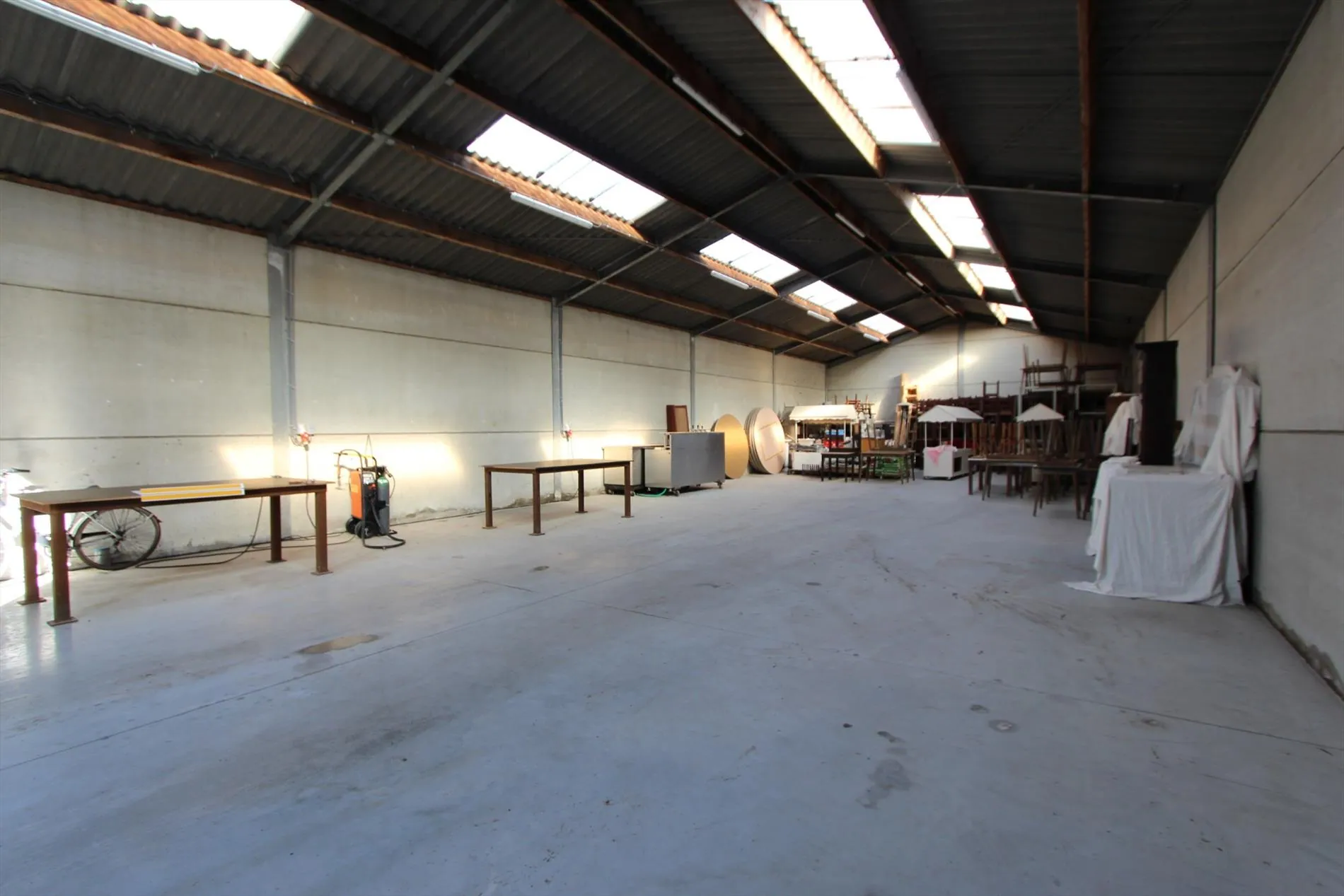 Dit magazijn heeft een totale oppervlakte van 240 m², afmetingen 10 m breedte en 24 m lengte. Deze loods kan enkel dienst doen voor opslagruimte en is instapklaar. Onroerende voorheffing ten laste van de huurder. Huurprijs 600 €/mnd.