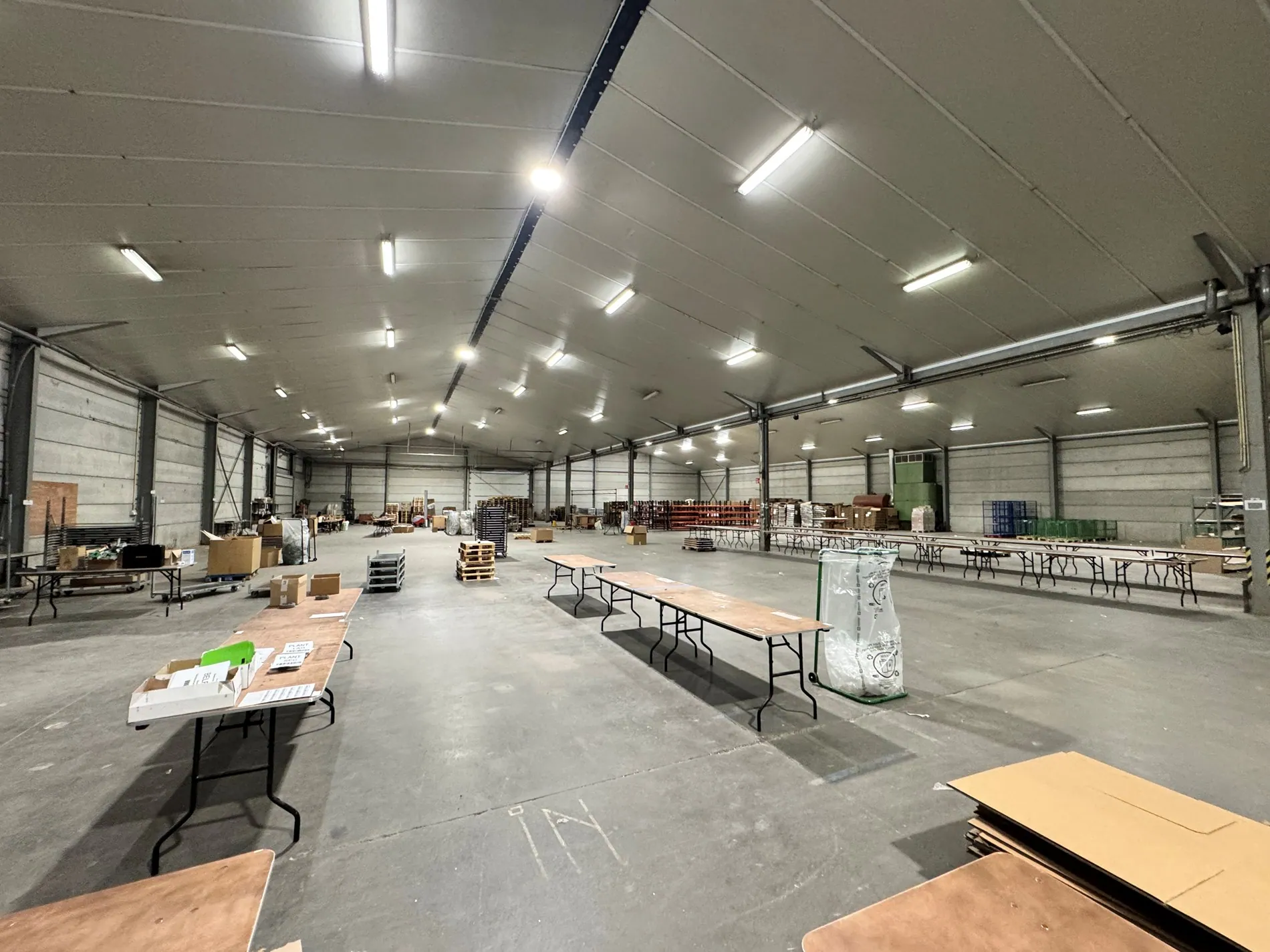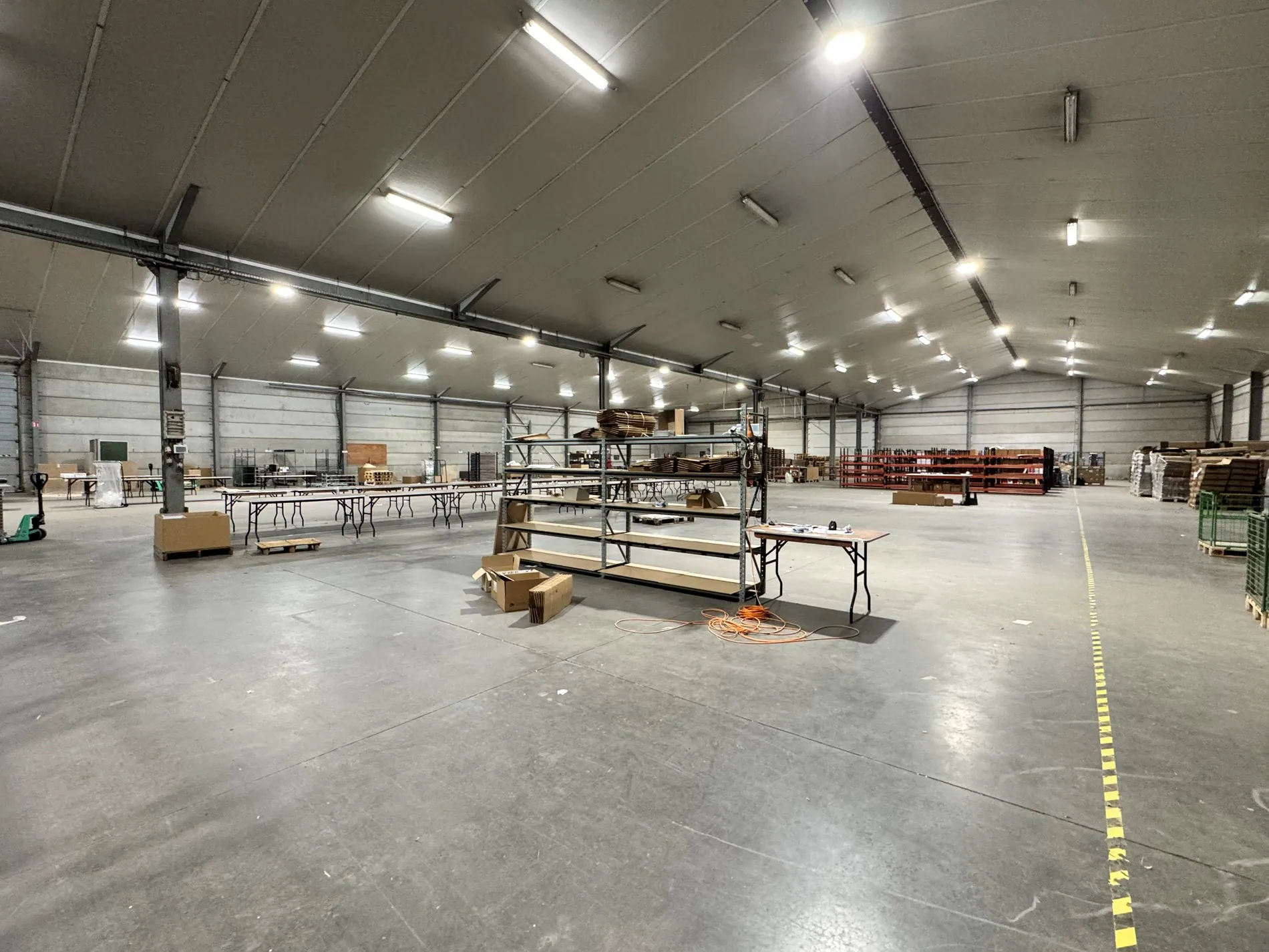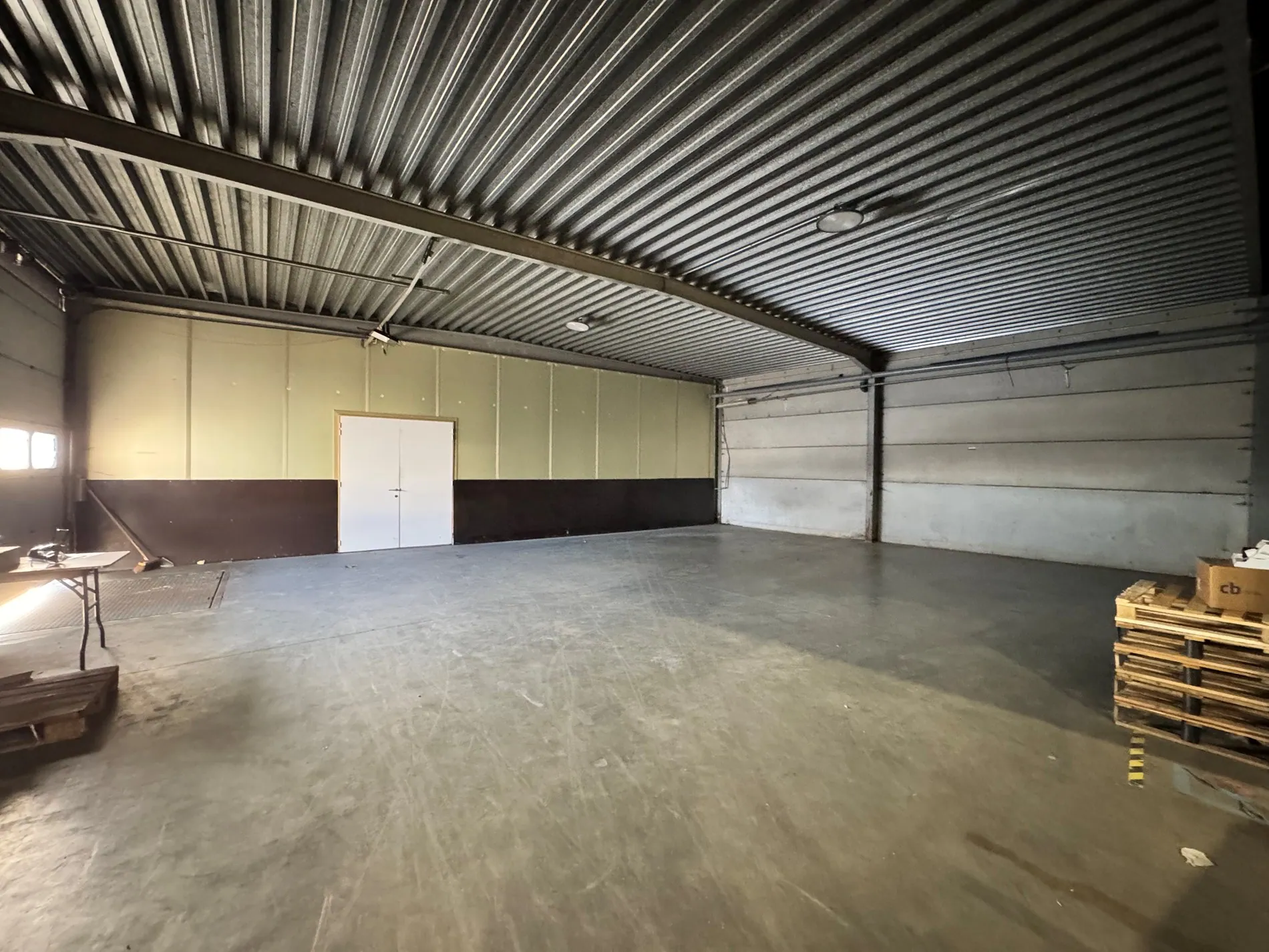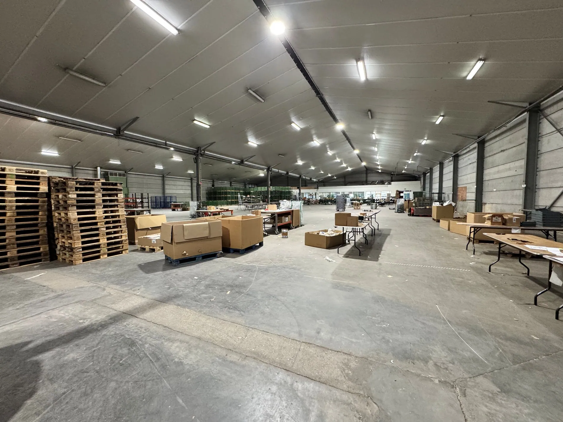 Vrij 1/04/2026. Huurprijs 4265 €/mnd. De loods en de burelen kunnen elk afzonderlijk verhuurd worden.