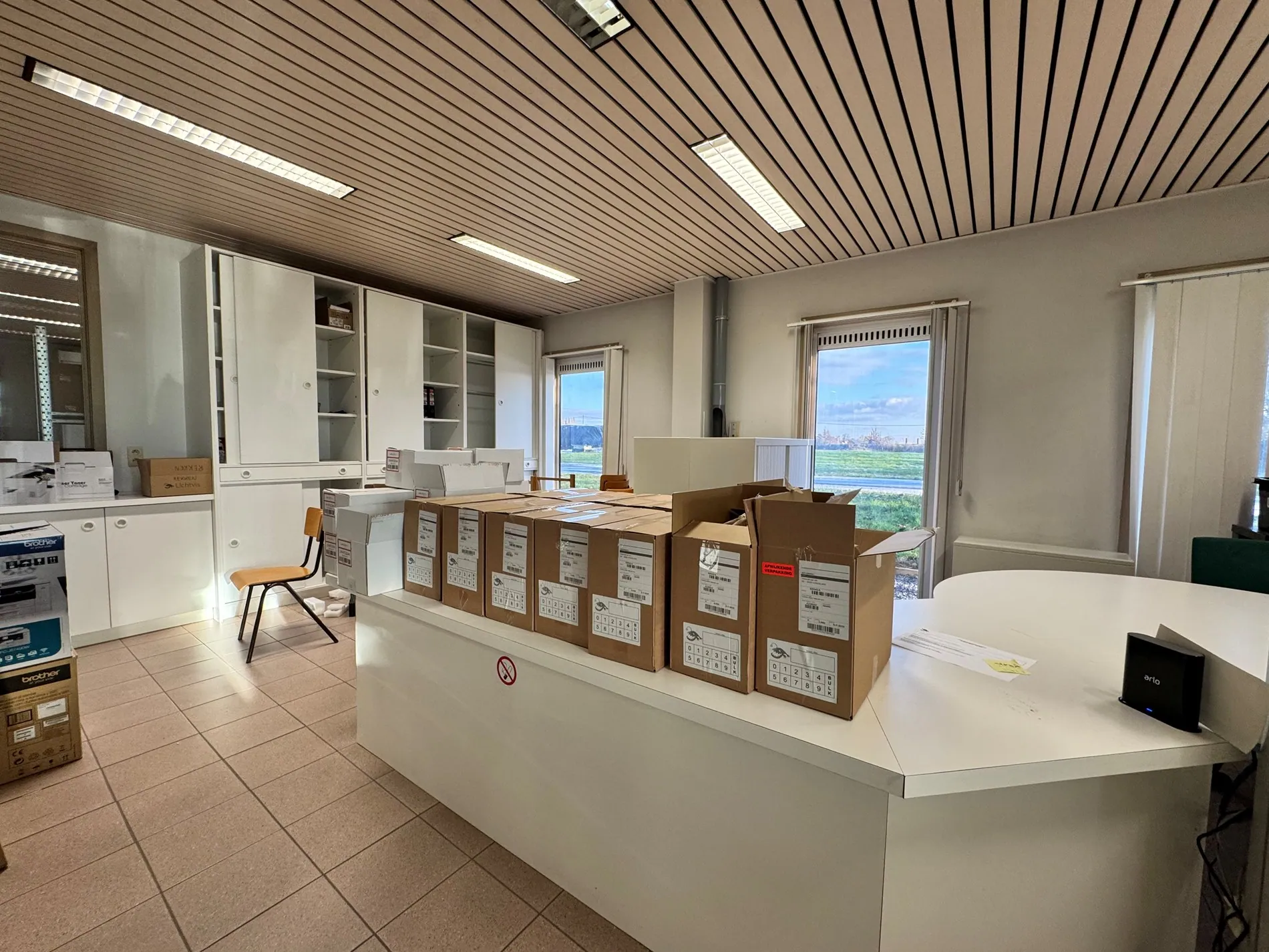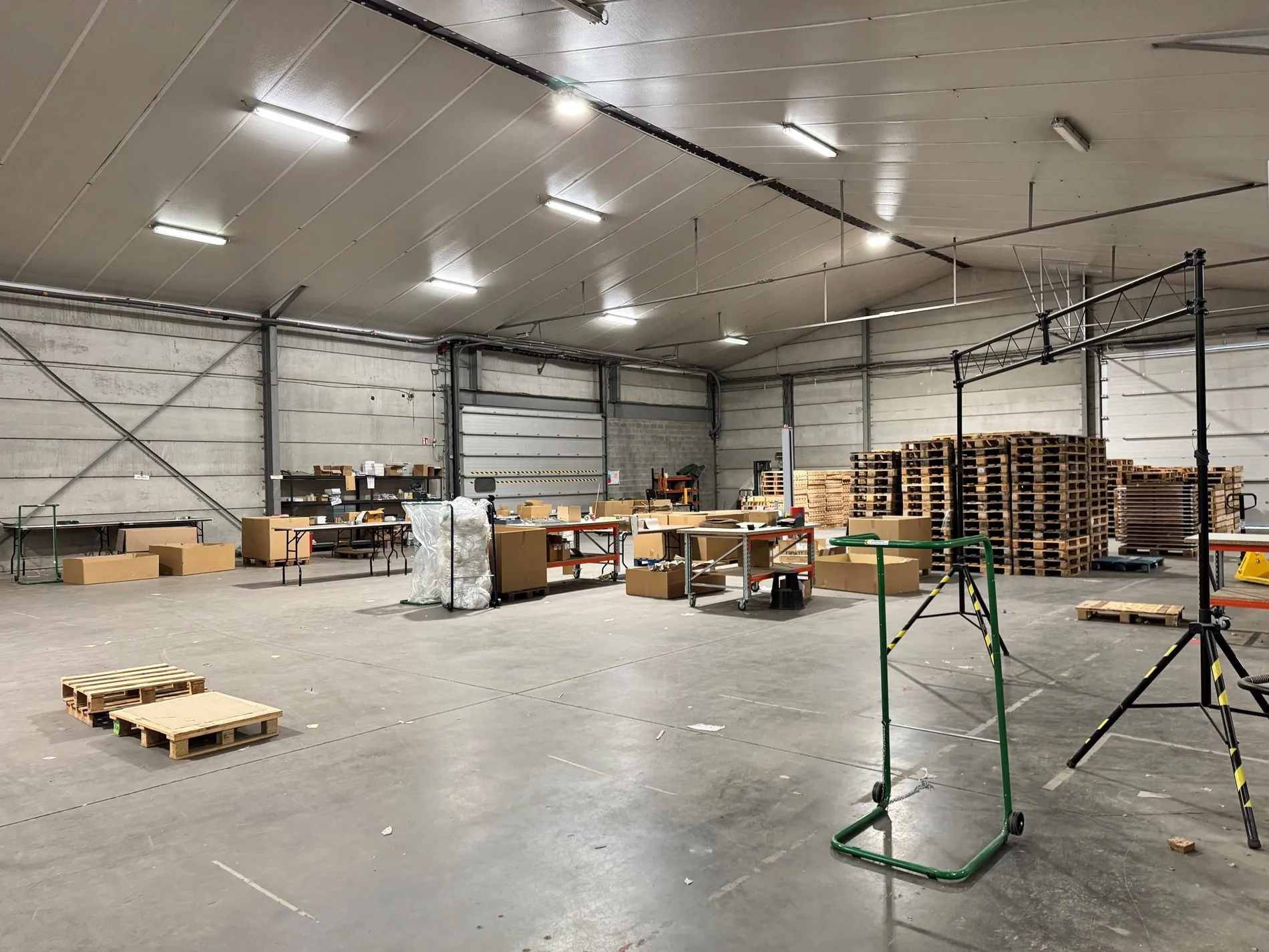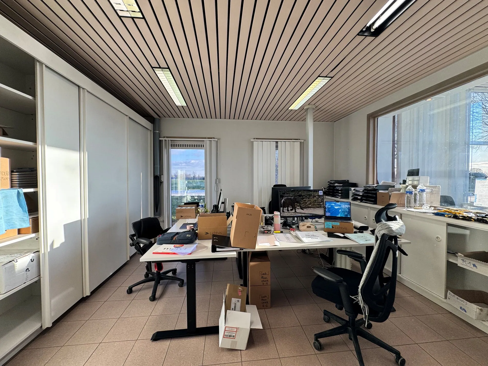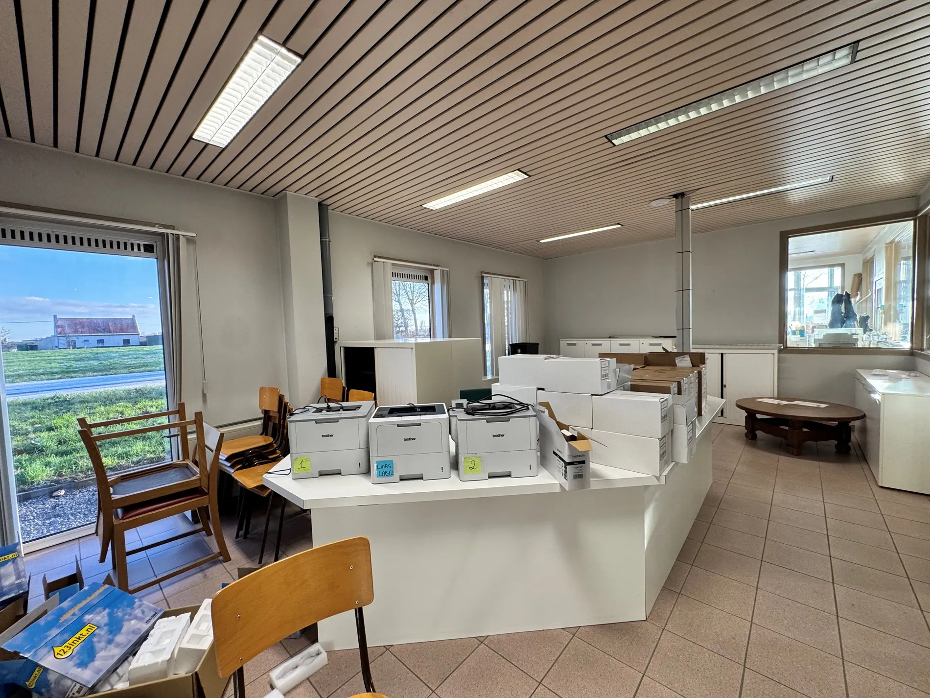 Vrij 1/04/2026. Huurprijs 4265 €/mnd. De loods en de burelen kunnen elk afzonderlijk verhuurd worden.