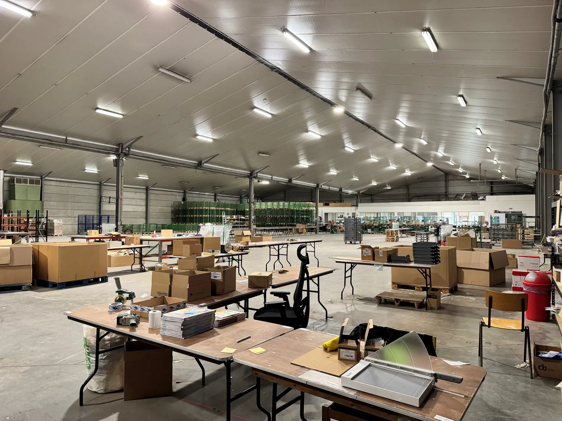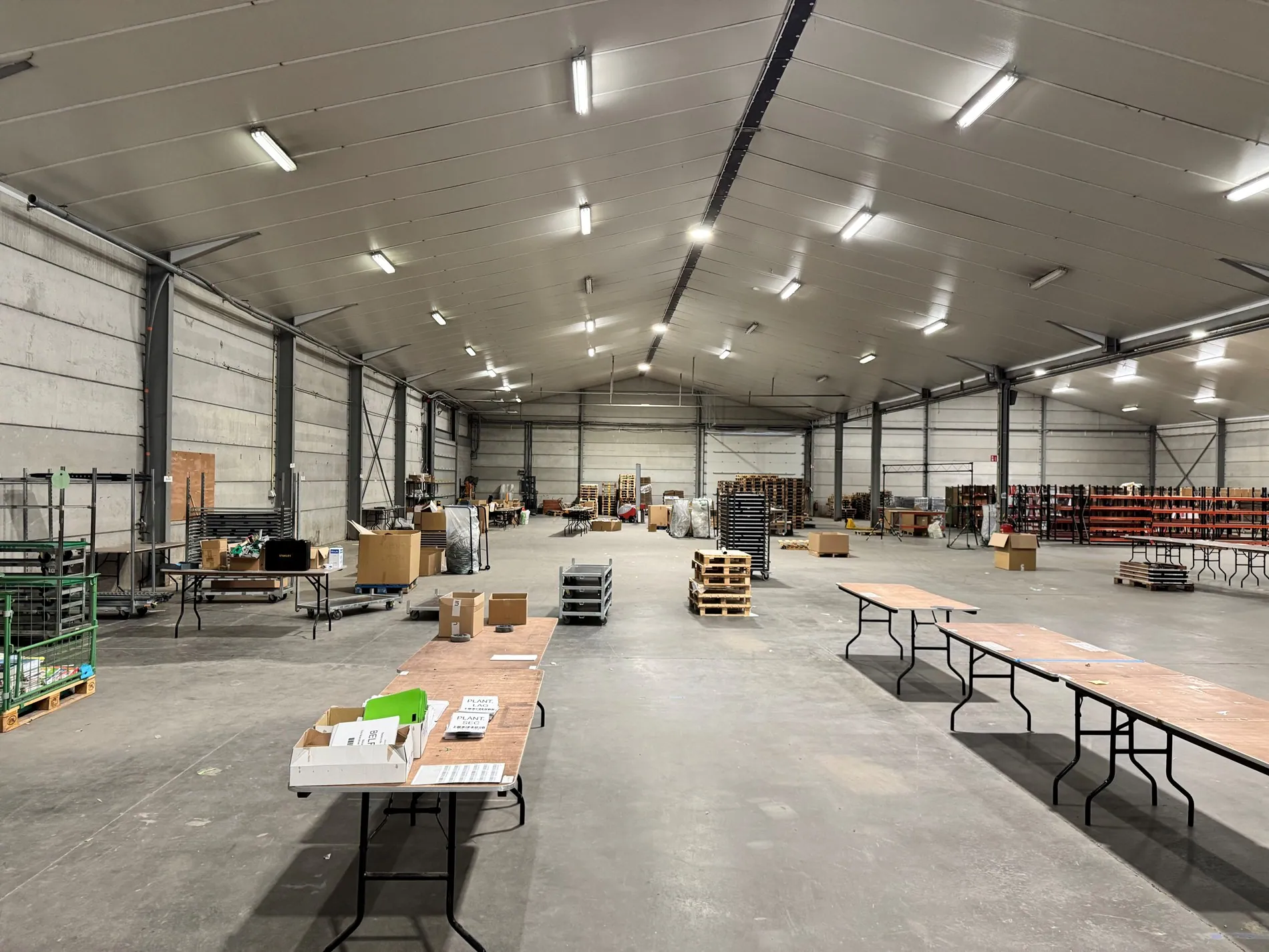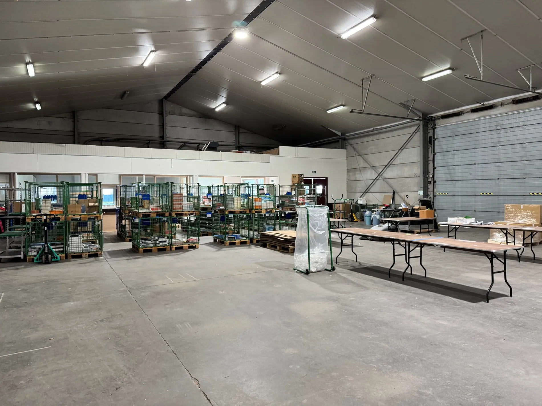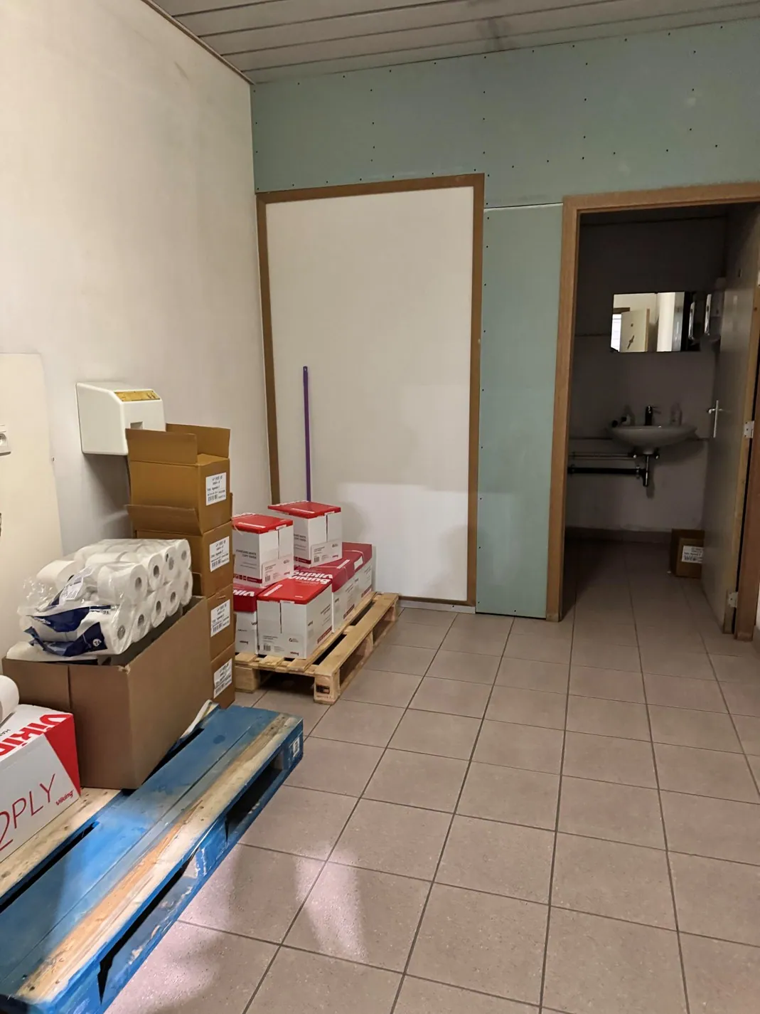 Vrij 1/04/2026. Huurprijs 4265 €/mnd. De loods en de burelen kunnen elk afzonderlijk verhuurd worden.