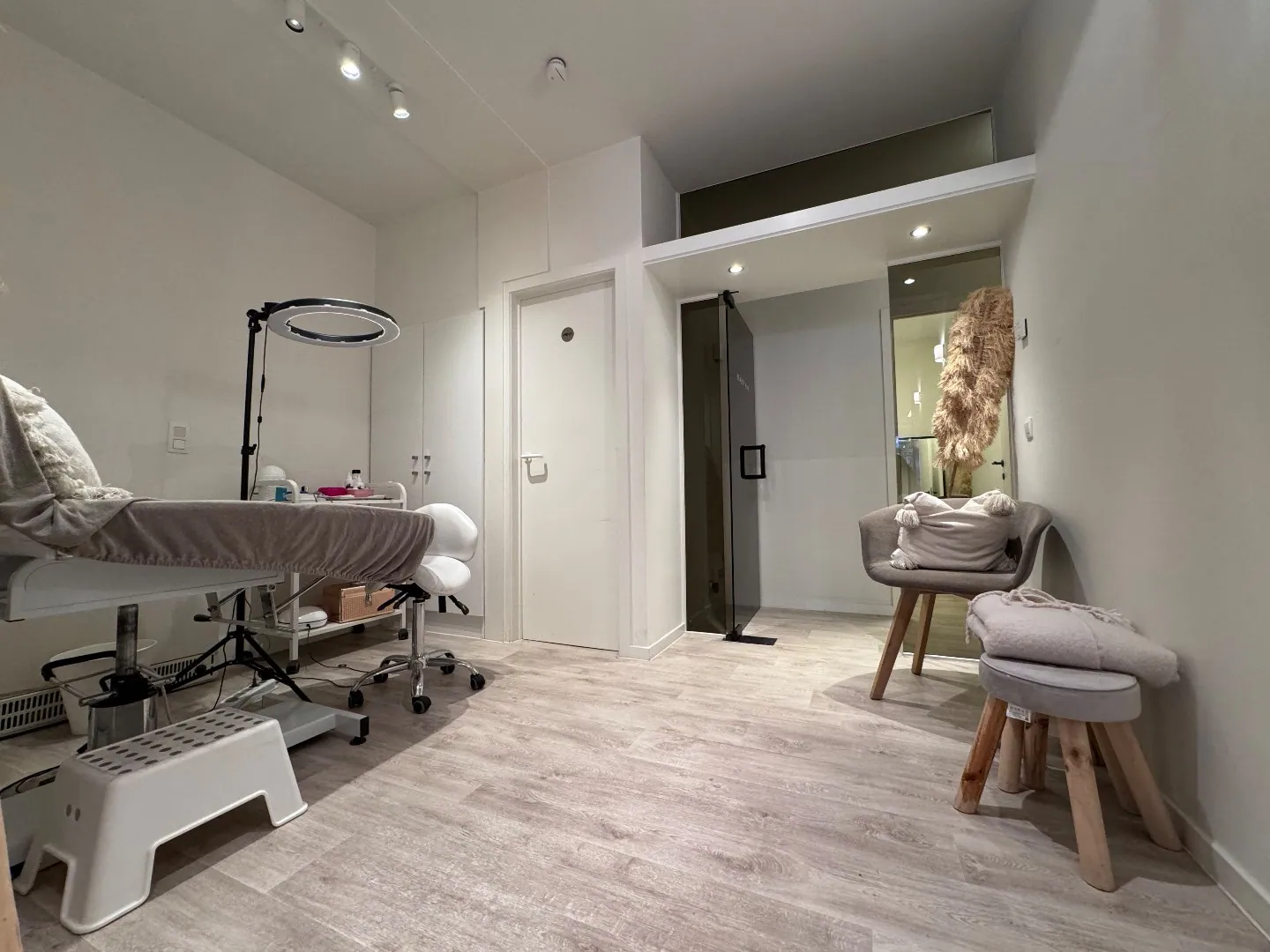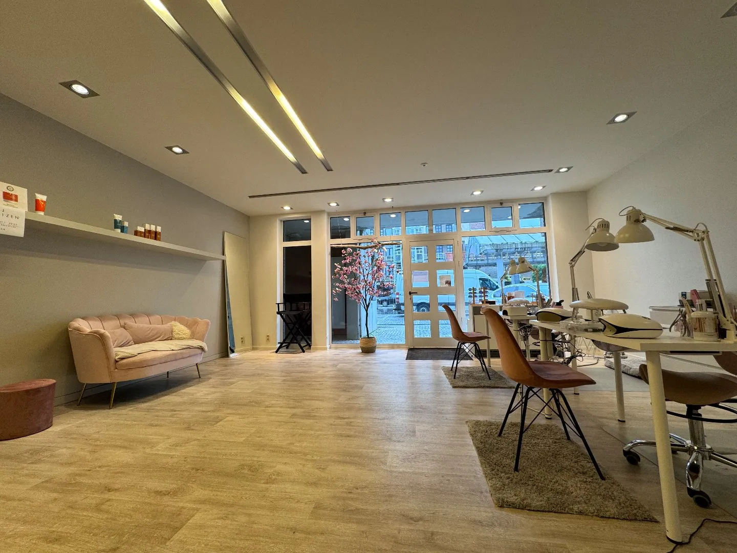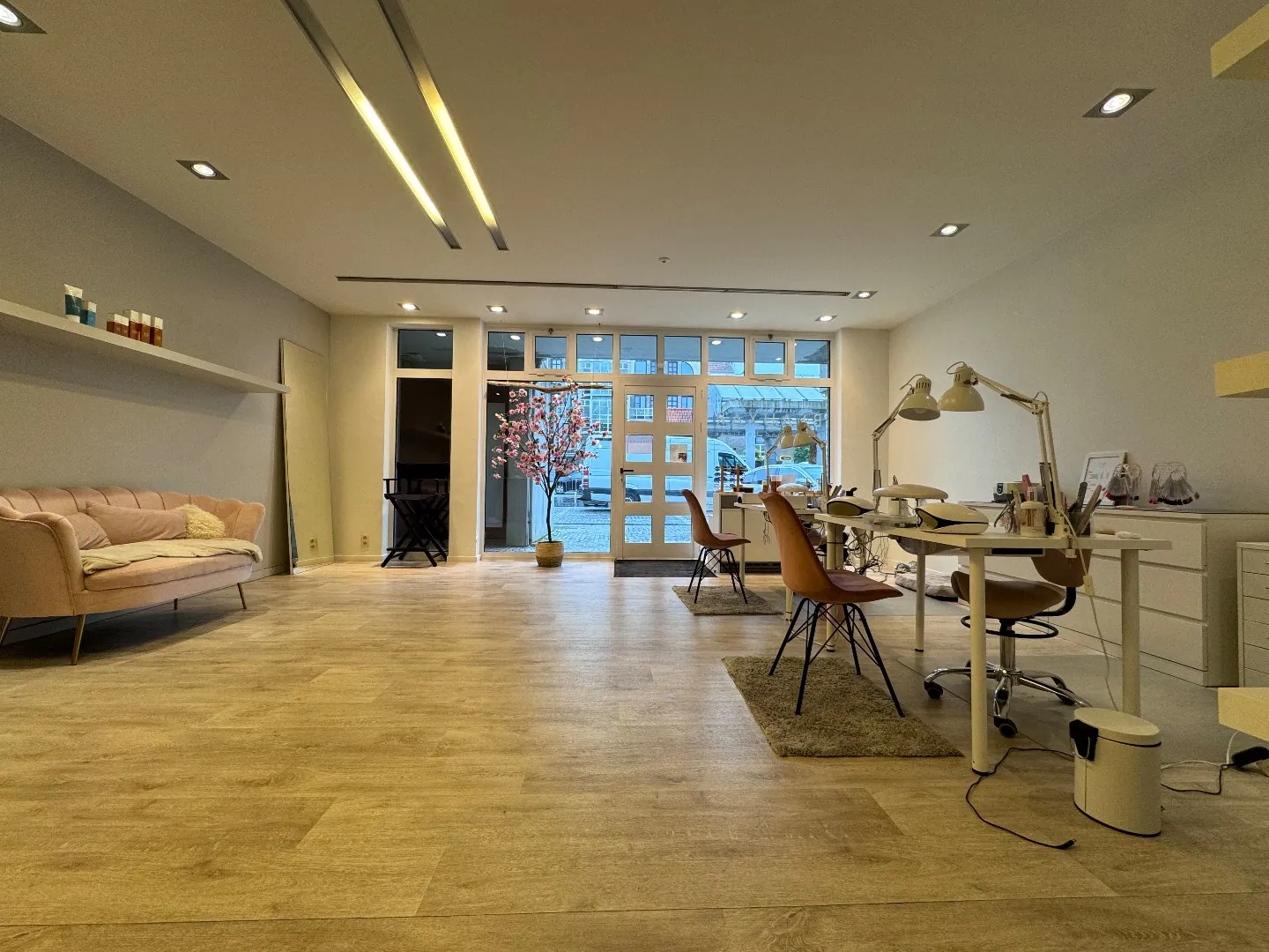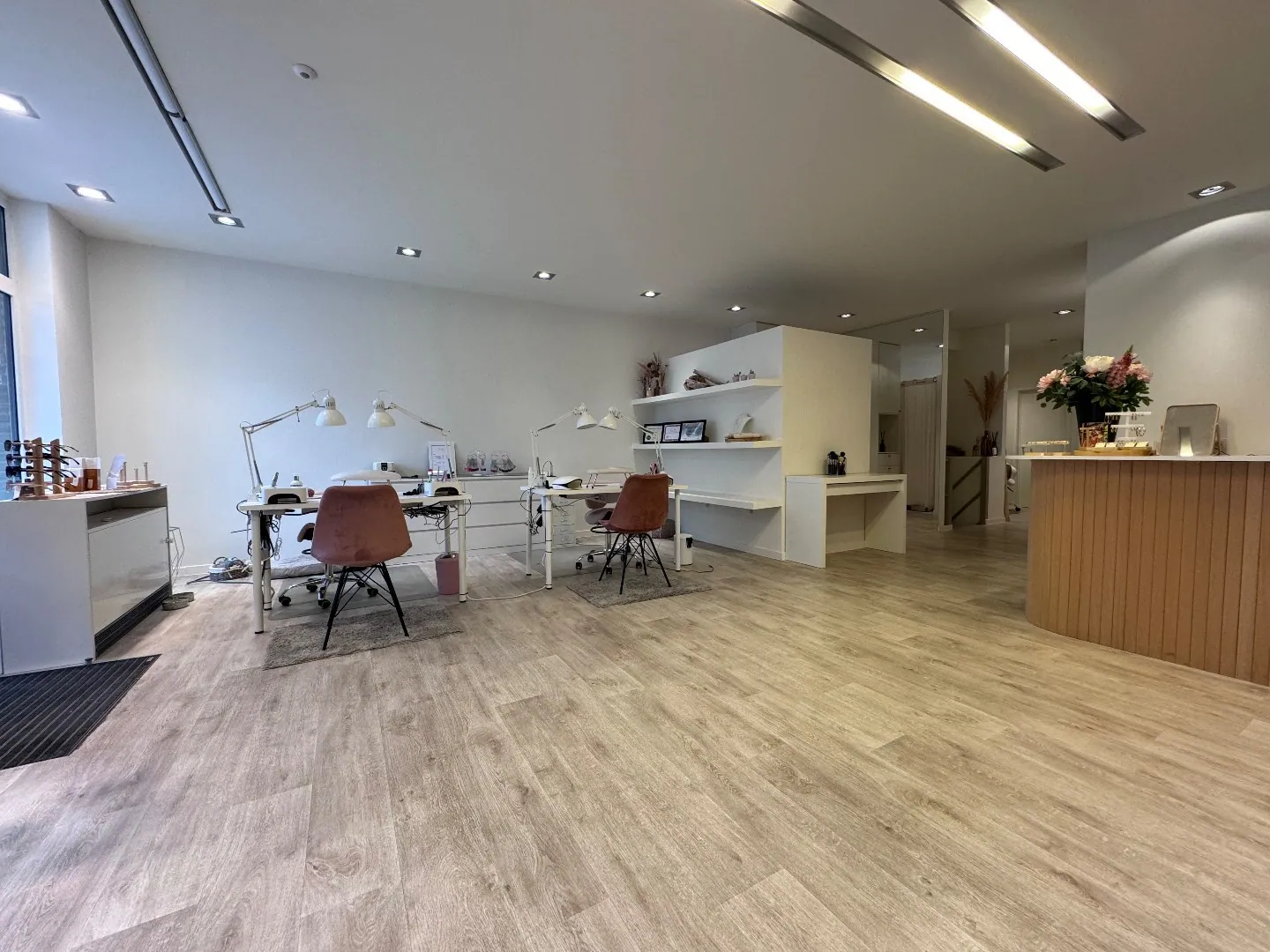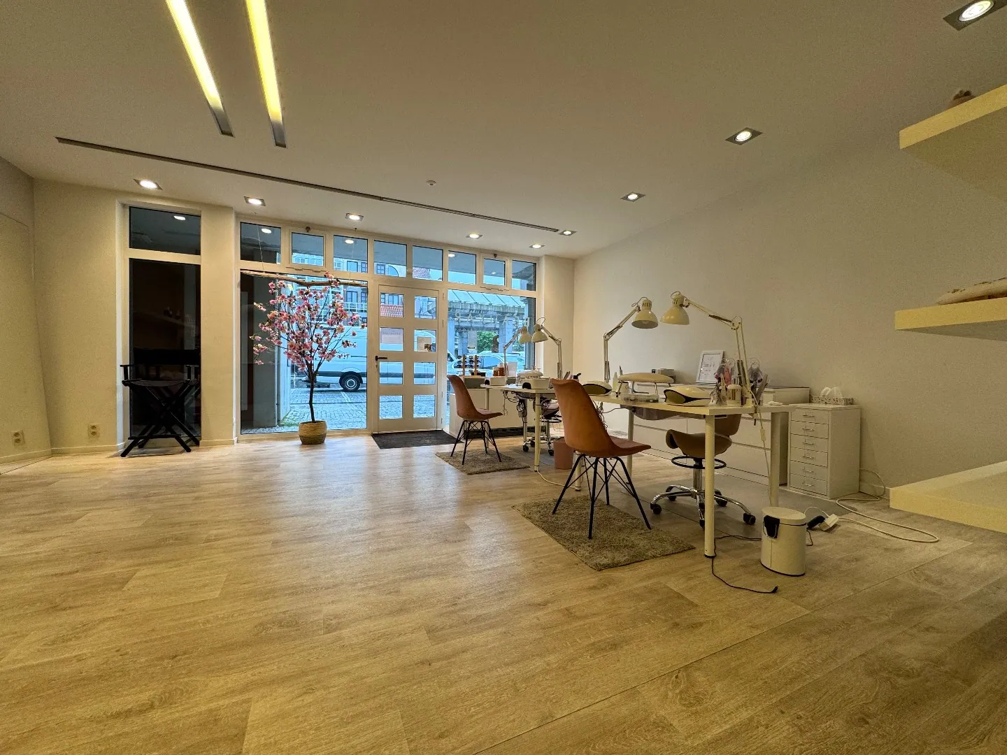 Deze gelijkvloerse winkel/handelsruimte/kantoorruimte heeft een oppervlakte van 101 m² en bestaat uit: de eigenlijke handelsruimte - 2 afzonderlijke werkruimten - bergruimte - toilet - keuken - stockageruimte in de kelderverdieping.