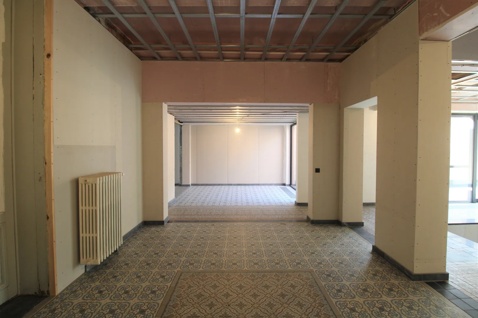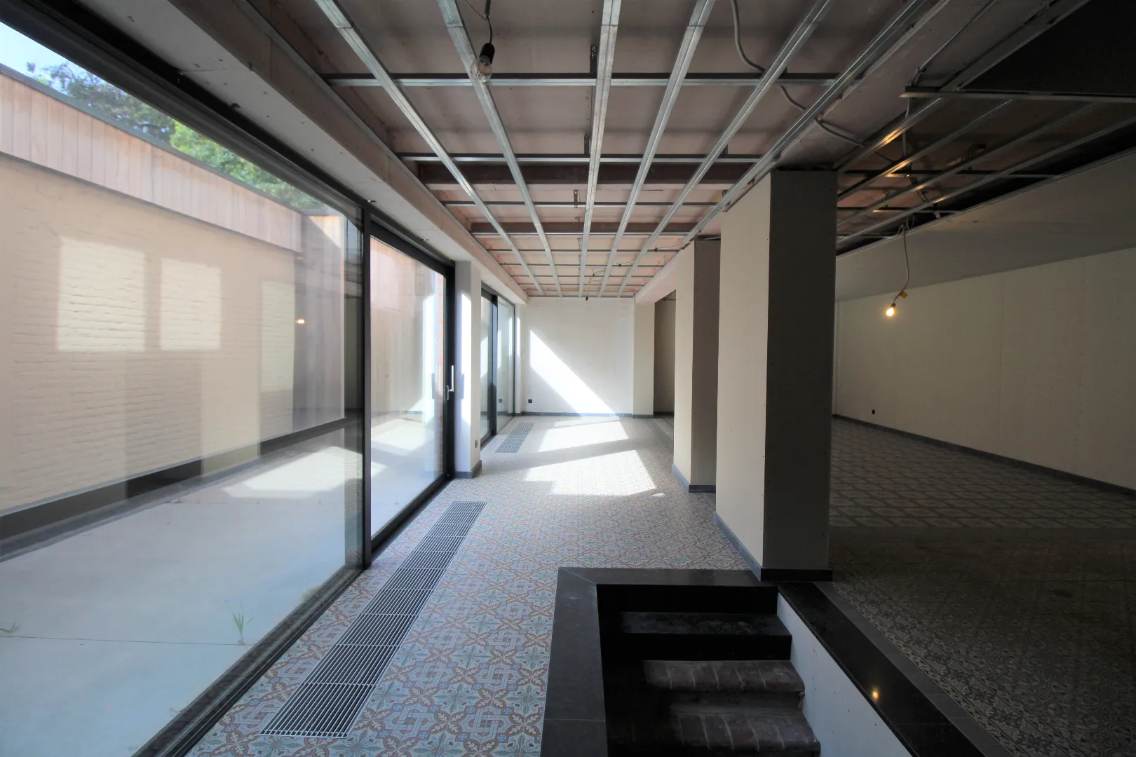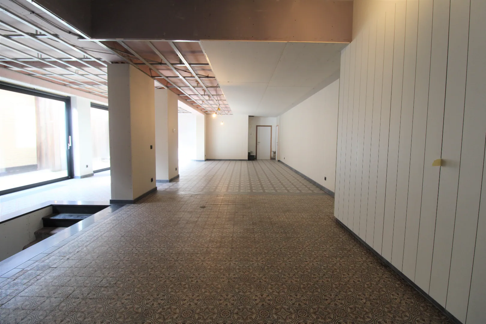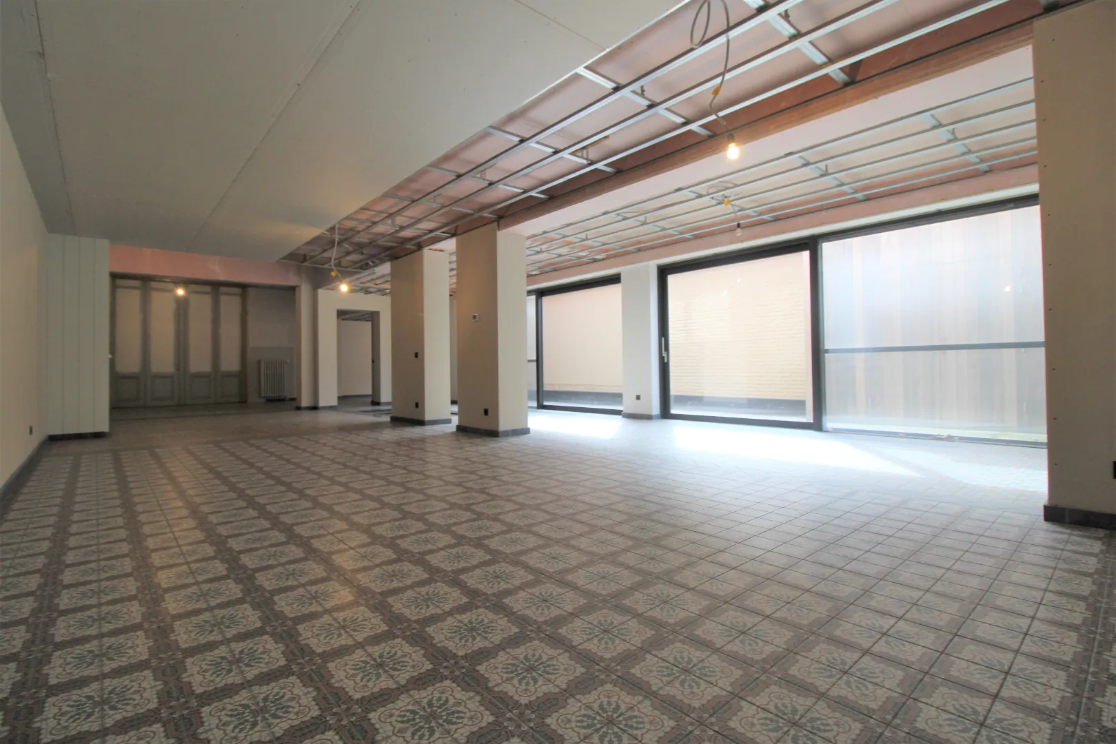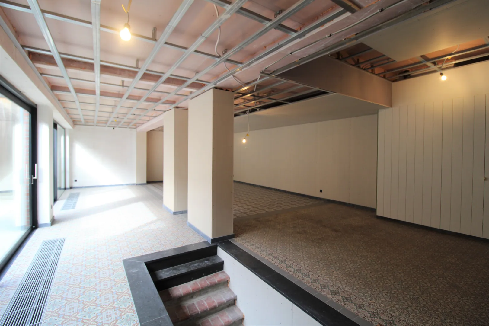 Verdere afwerking zoals vals plafond en verlichting kan gebeuren in samenspraak met de verhuurder.