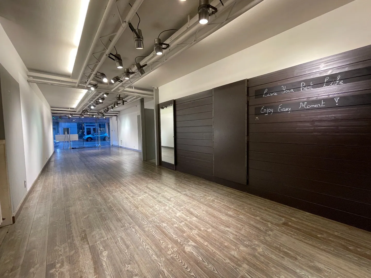 De indeling is als volgt: gelijkvloerse handelsruimte (+/- 100 m²) met elektrische rolluik - pashokjes - binnentuin - twee verdiepingen voor stockage. Wateraansluiting aanwezig, toilet...