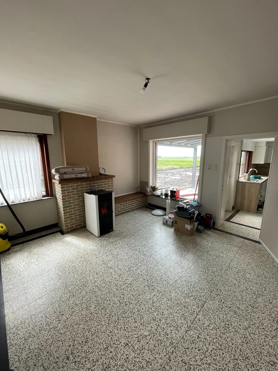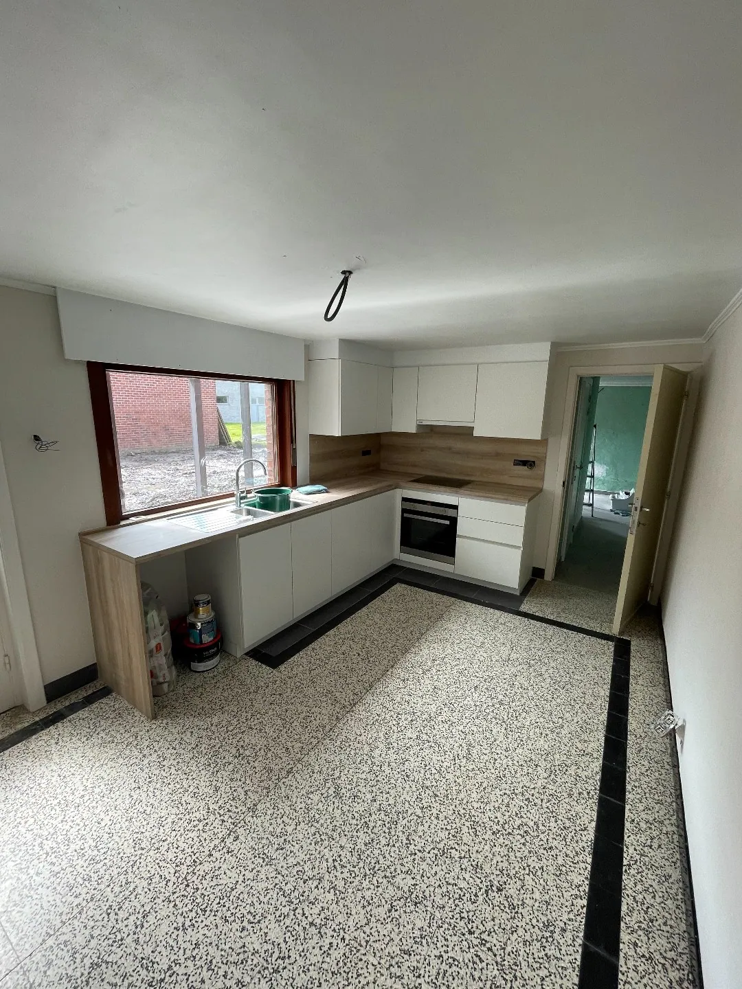 vernieuwde badkamer met douche, lavabo en toilet - keuken - wasplaats - 2/3 slaapkamers - living - zolder - terras en tuin. Verwarming beneden op palletkachel.