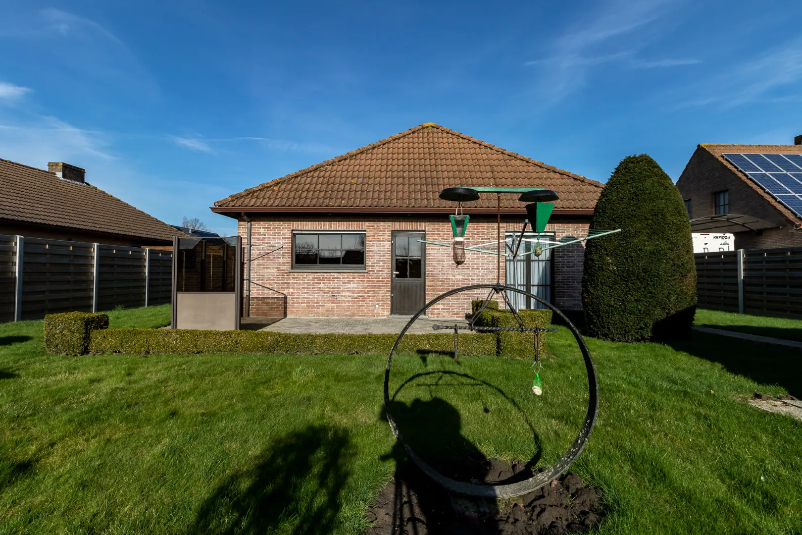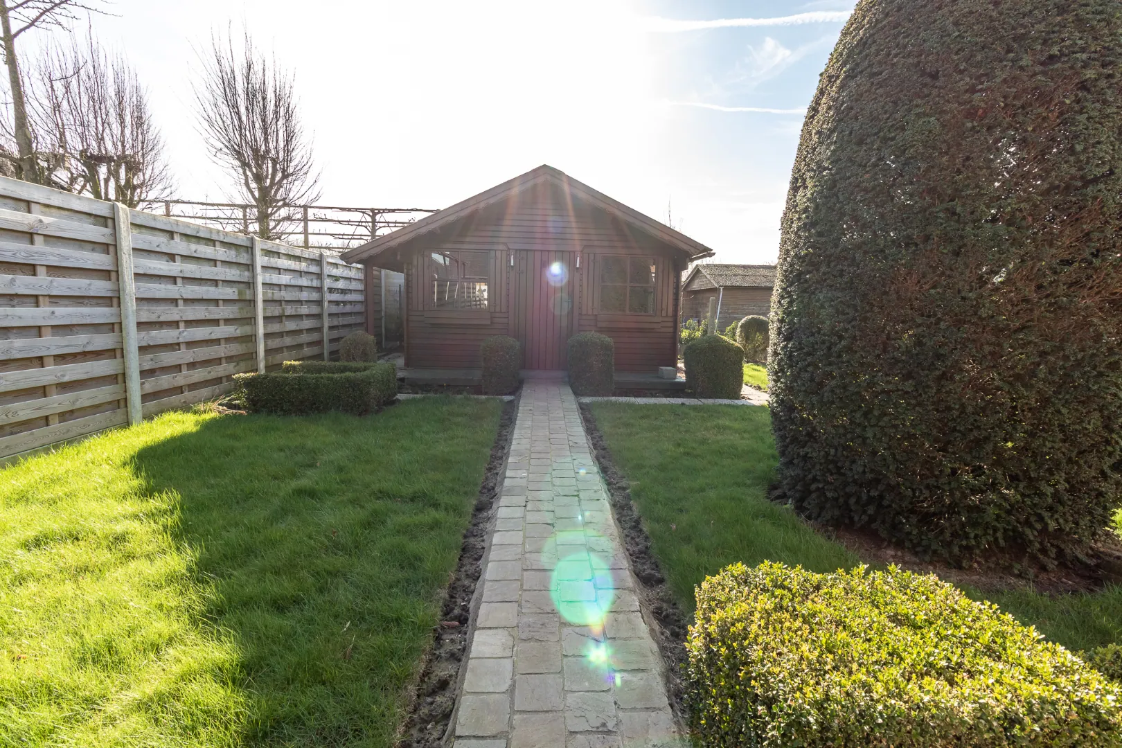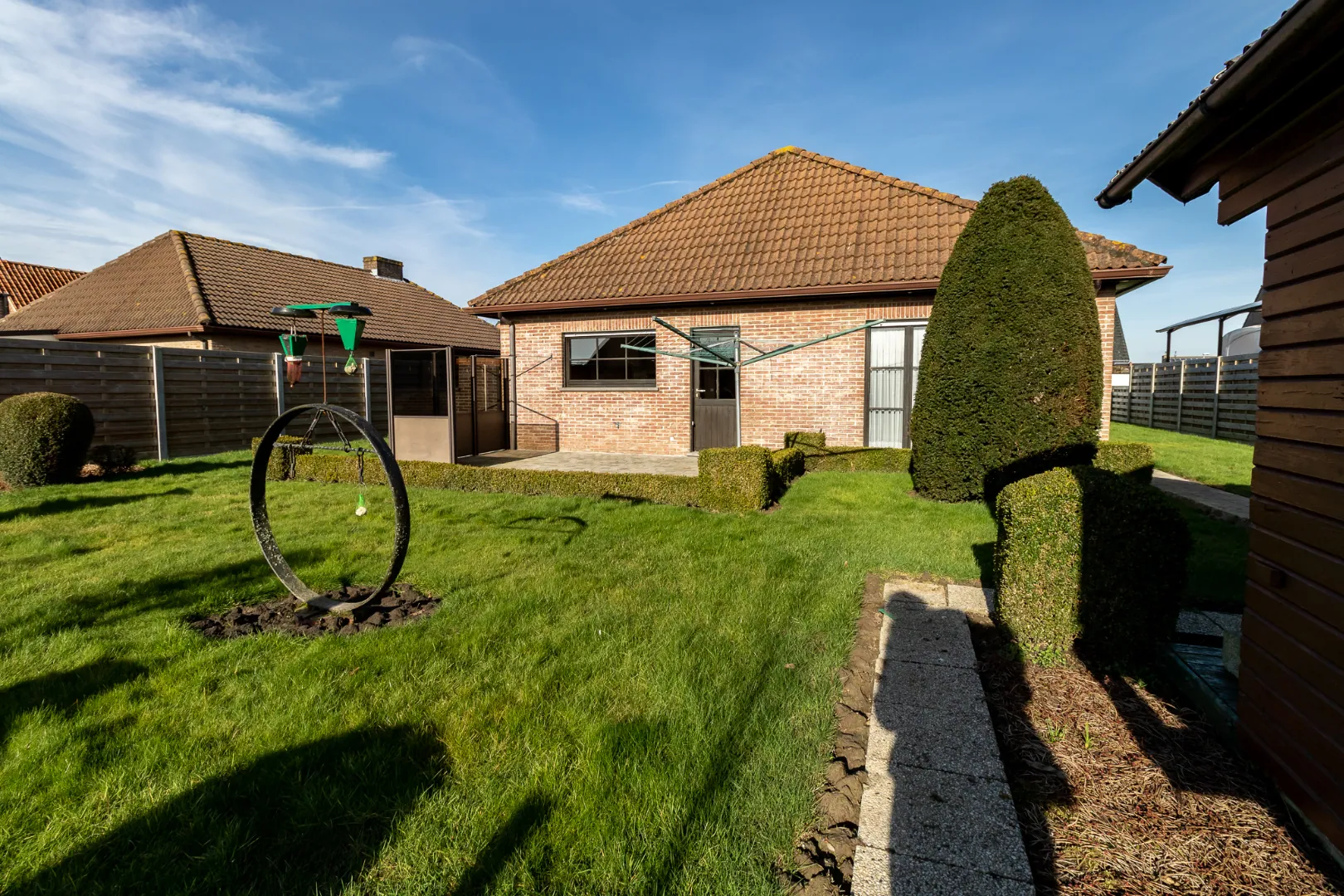 Romdom de woning bevindt zich een aangelegde zonnige tuin met tuinberging.