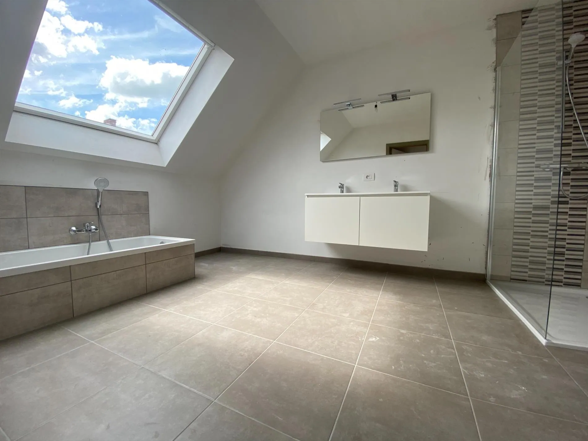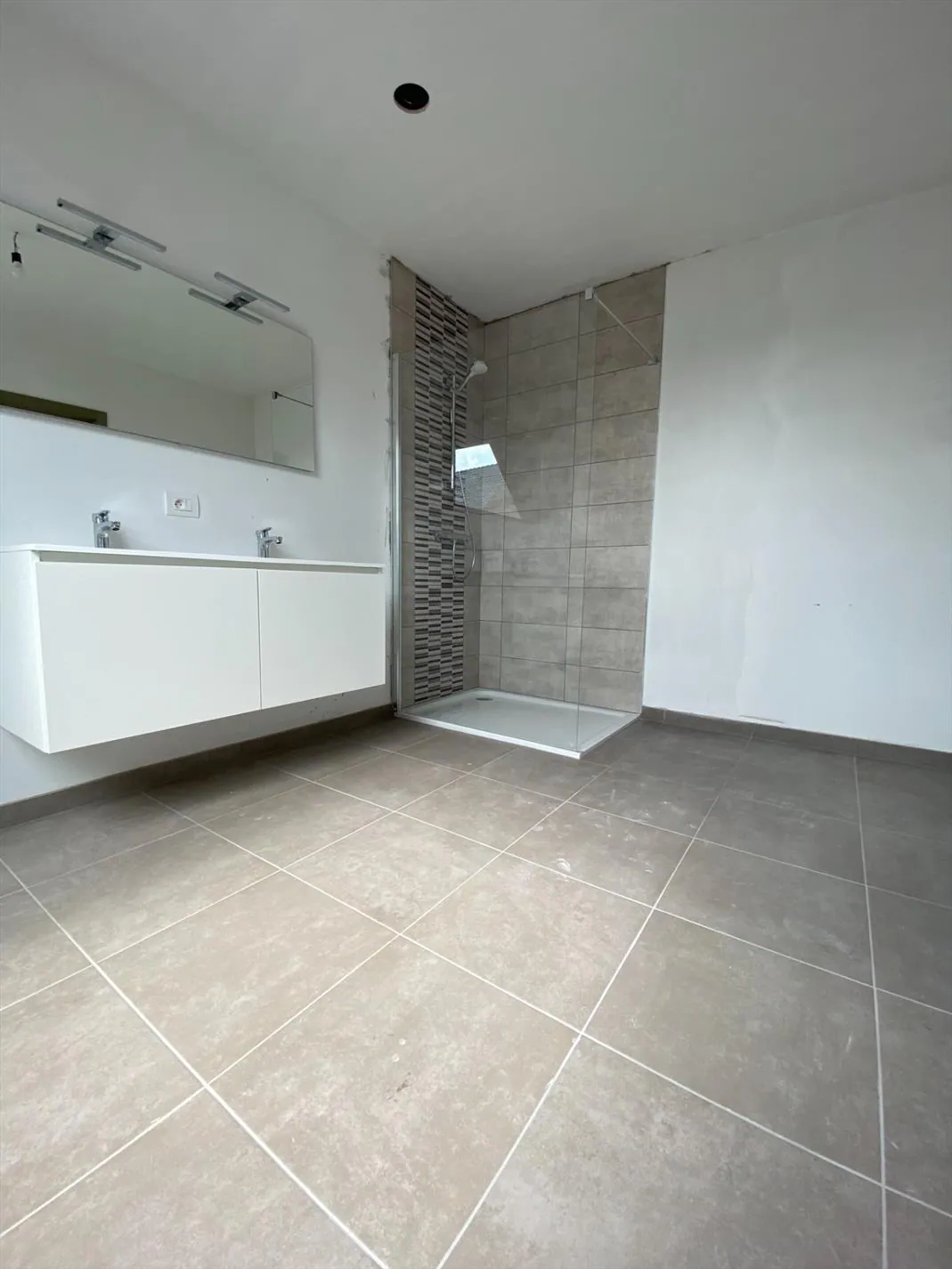 Deze nieuwbouwwoning bestaat uit: GELIJKVLOERS: inkomhal - toilet - living met open keuken - garage. 1ste verdiep: nachthal - 3 slaapkamers - badkamer - afzonderlijk toilet. Geïsoleerde zolder. Mooie tuin met ochtend- en middagzon.