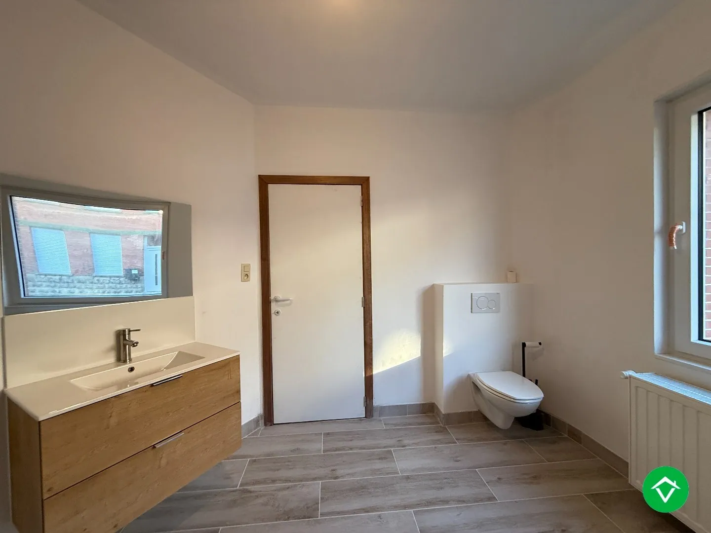 De indeling is als volgt: inkomhal - knusse living met aanpalende keuken - wasberging/technische ruimte - badkamer (douche, toilet en meubel) - koer - zij-ingang voor het plaatsen van een fiets.