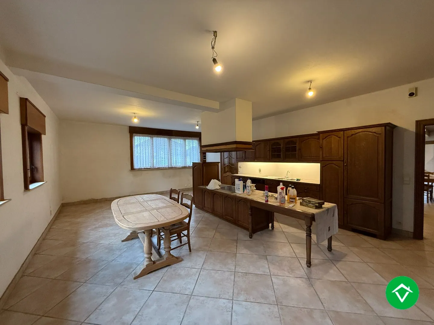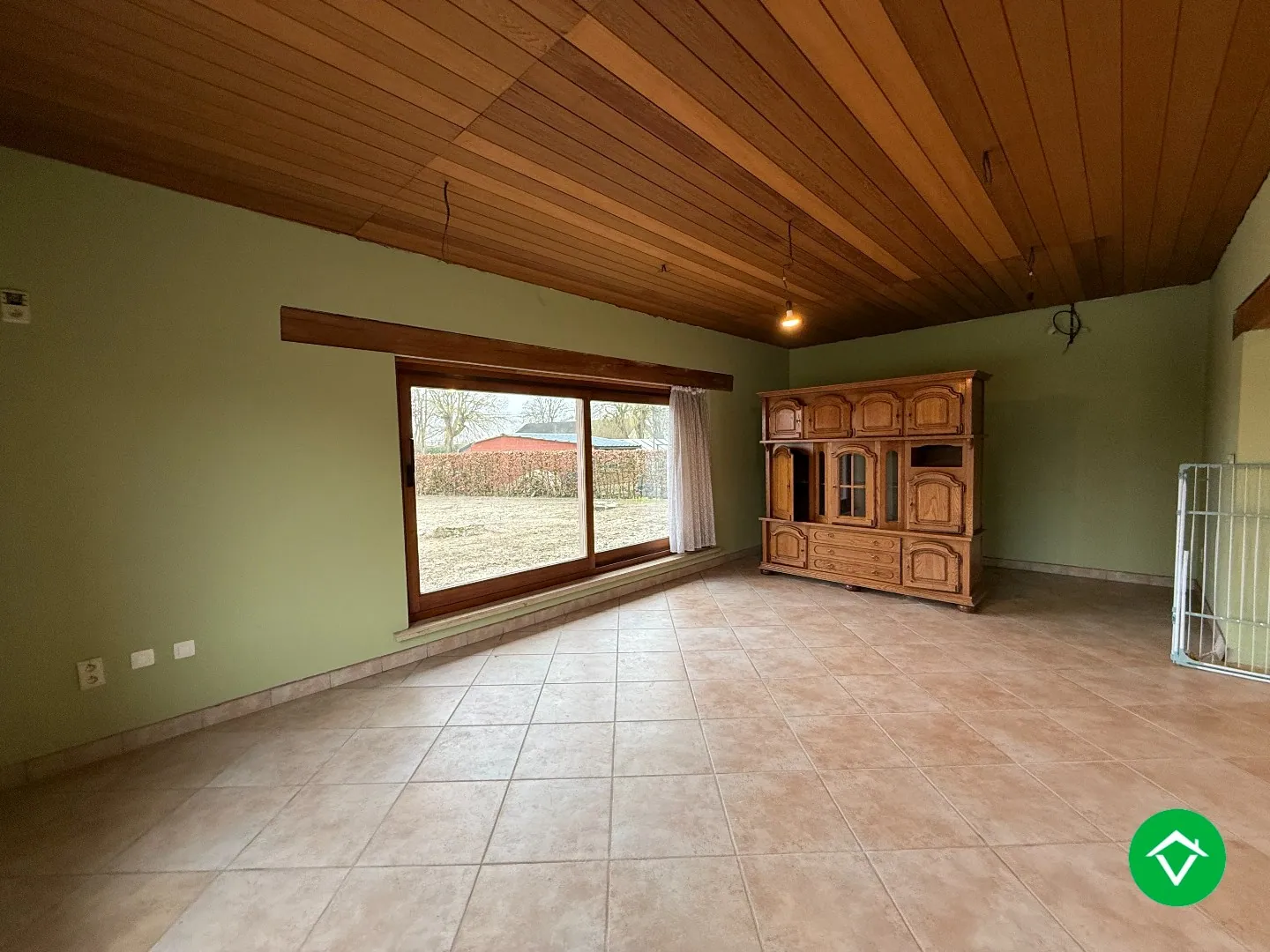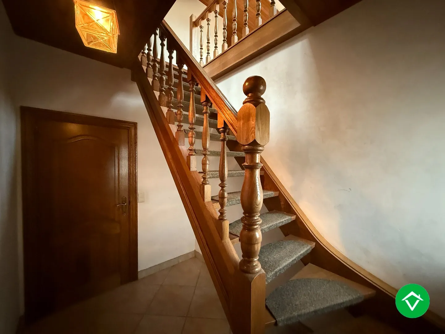 De indeling is als volgt: oprit - voortuin - inkomhal - zeer ruime living met bijzitplaats - aparte, ruime keuken - hall - berging - wasberging - traphall - twee toiletten. Grote tuin met overdekte berging.