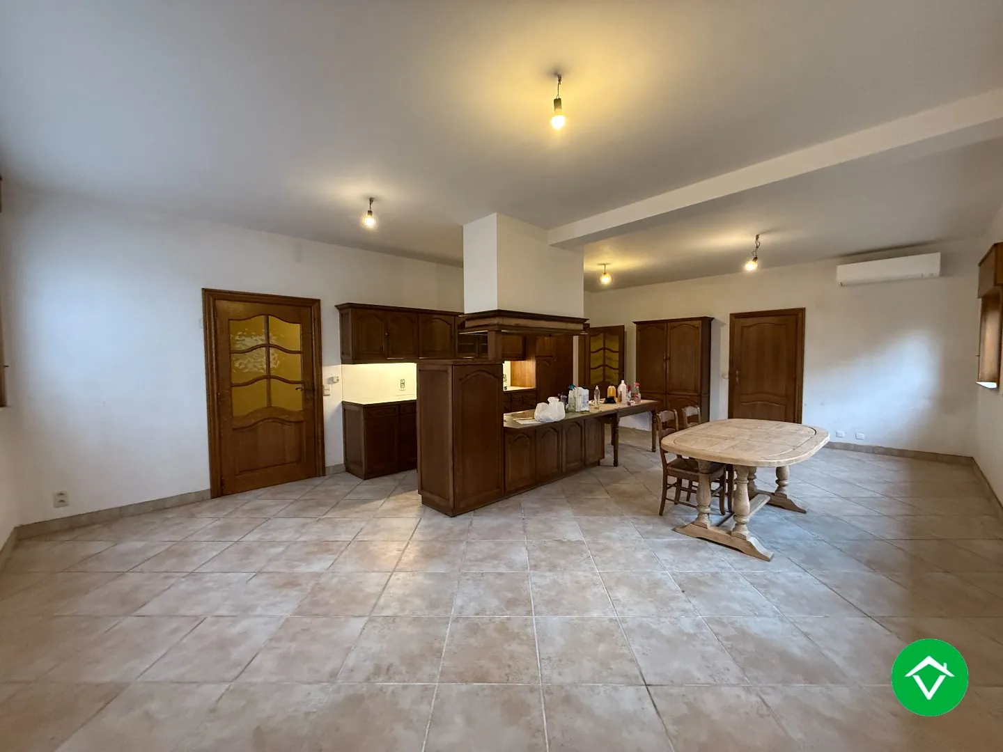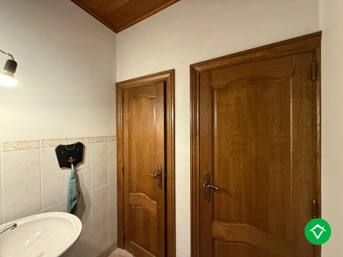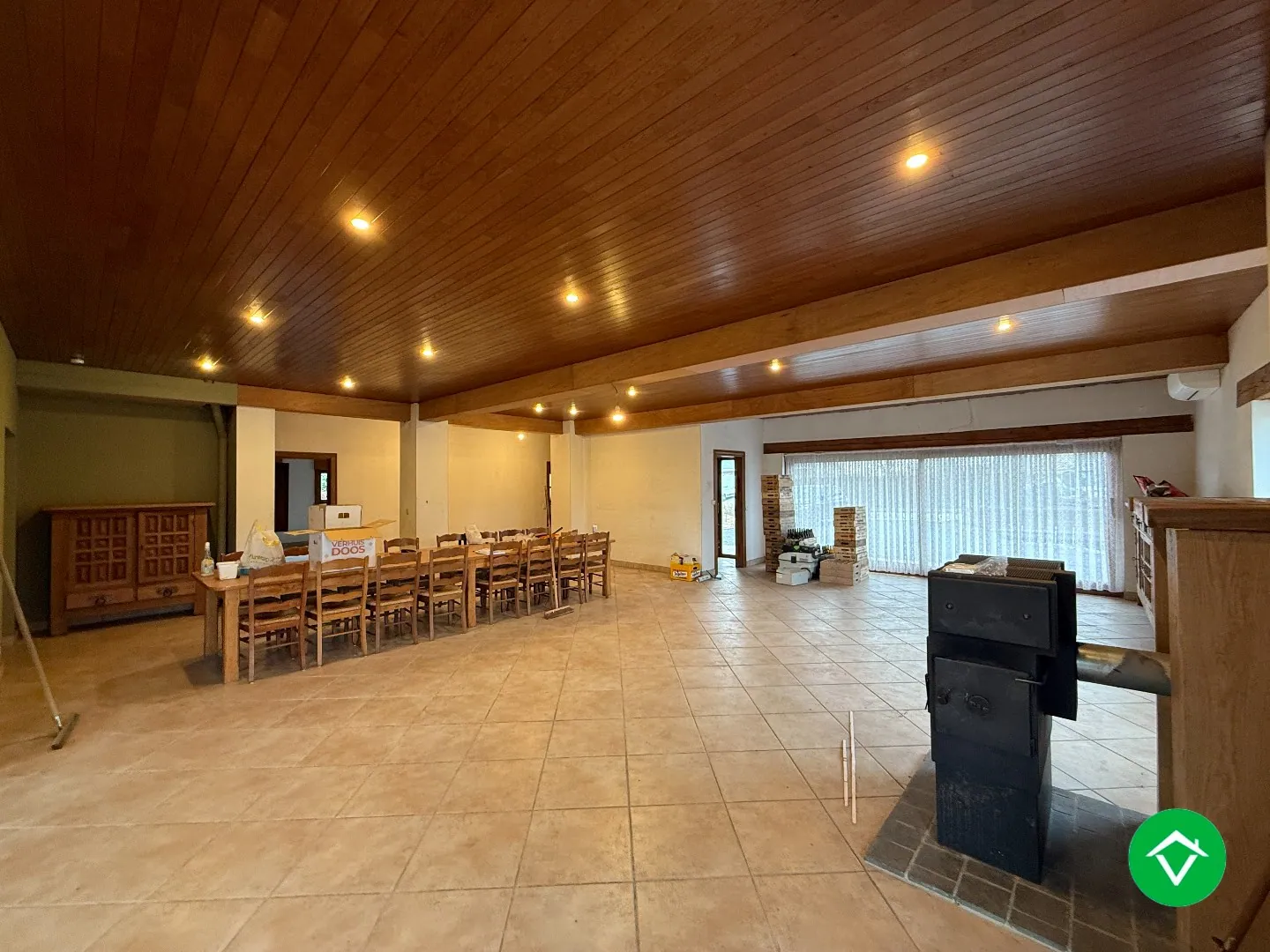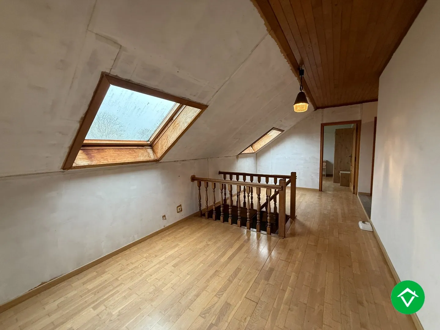 De indeling is als volgt: oprit - voortuin - inkomhal - zeer ruime living met bijzitplaats - aparte, ruime keuken - hall - berging - wasberging - traphall - twee toiletten. Grote tuin met overdekte berging.
