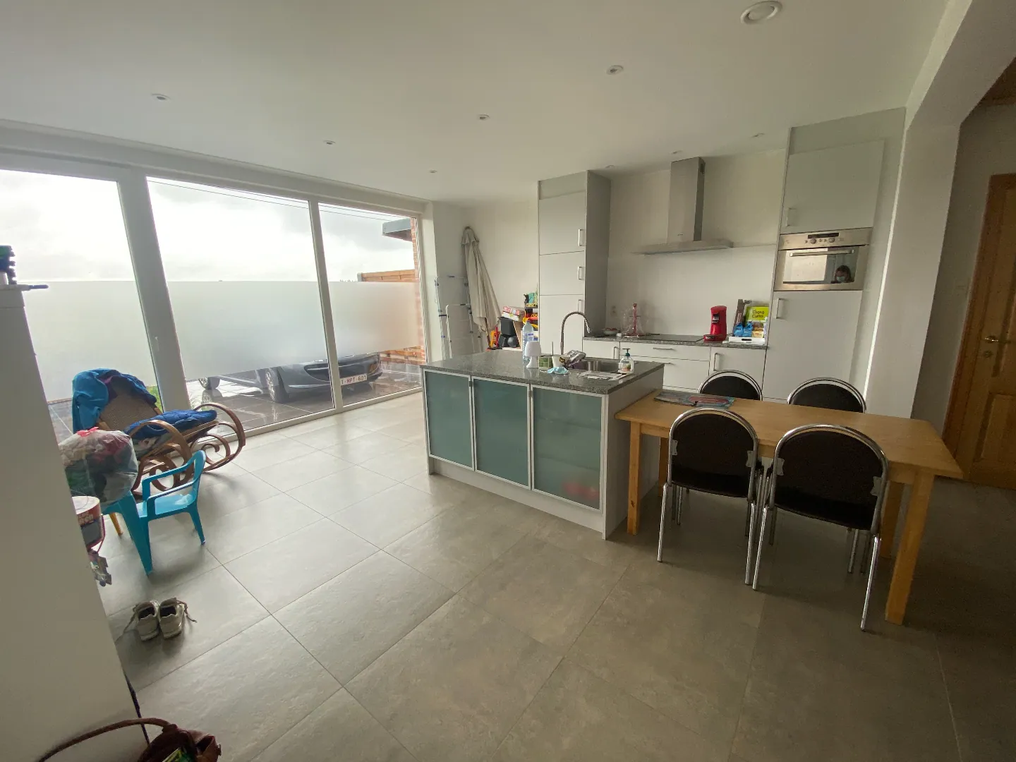 Deze woning bestaat uit een inkom - living - keuken - wasplaats - badkamer - 3 slaapkamers - toilet en een terras