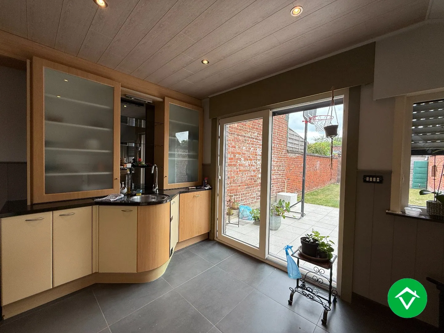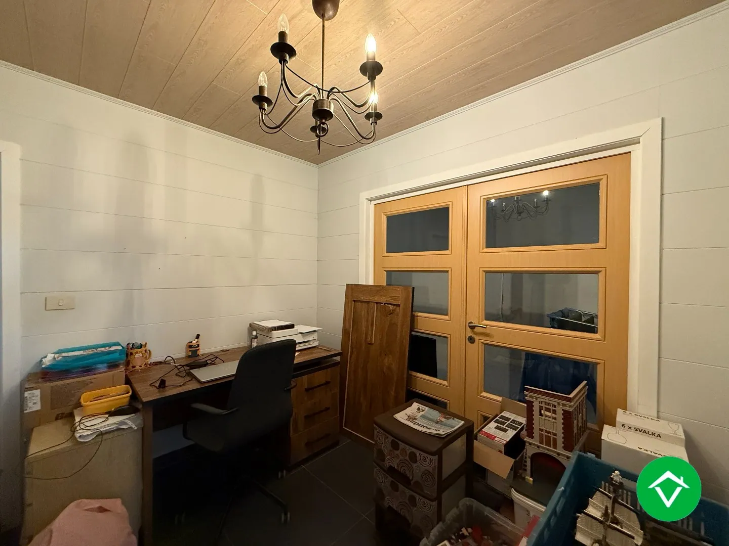 De indeling is als volgt: inkomhal - badkamer met douche en toilet - technische ruimte - trap - bureau - lichtrijke living - aanpalende keuken - terras - tuin en tuinhuis.