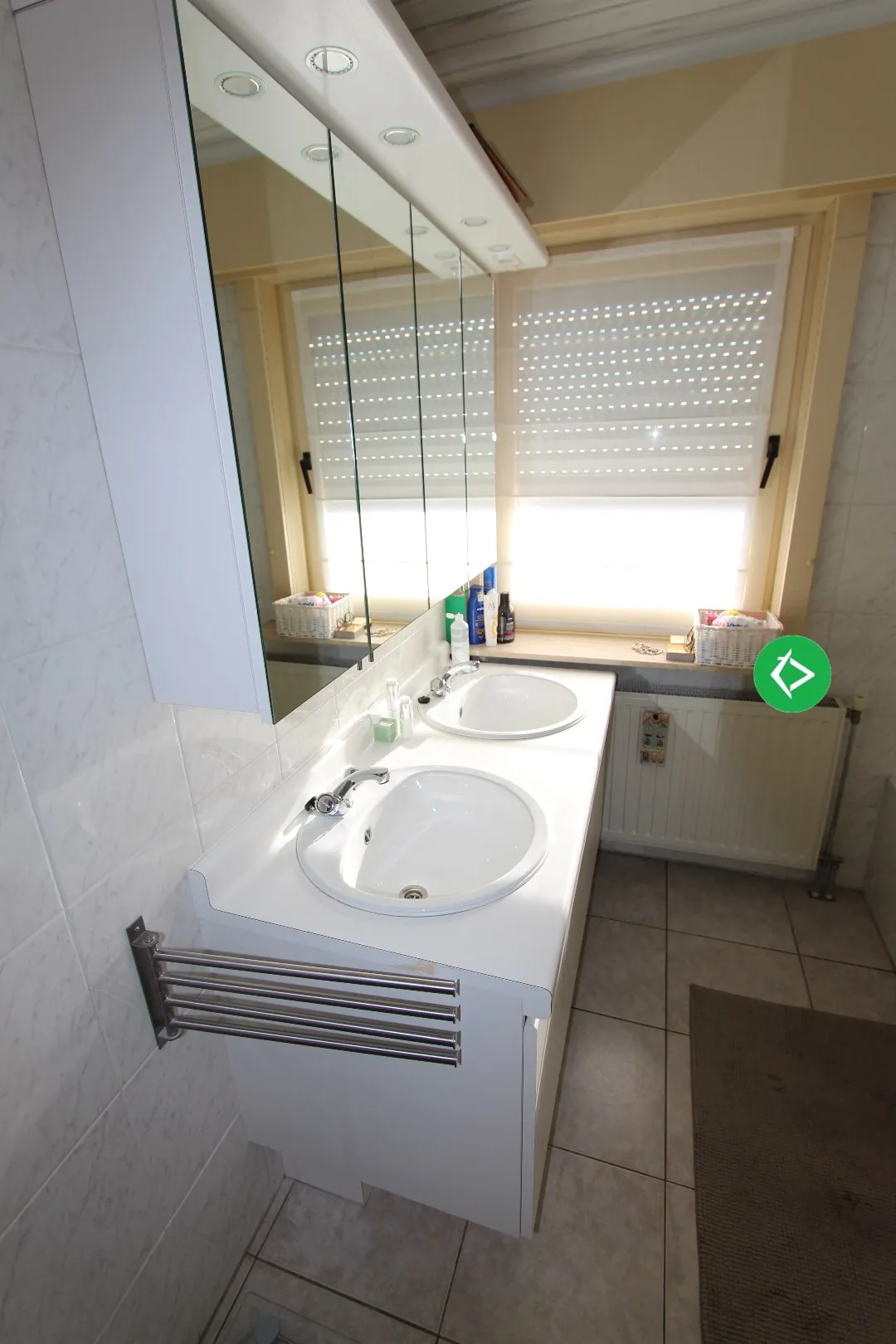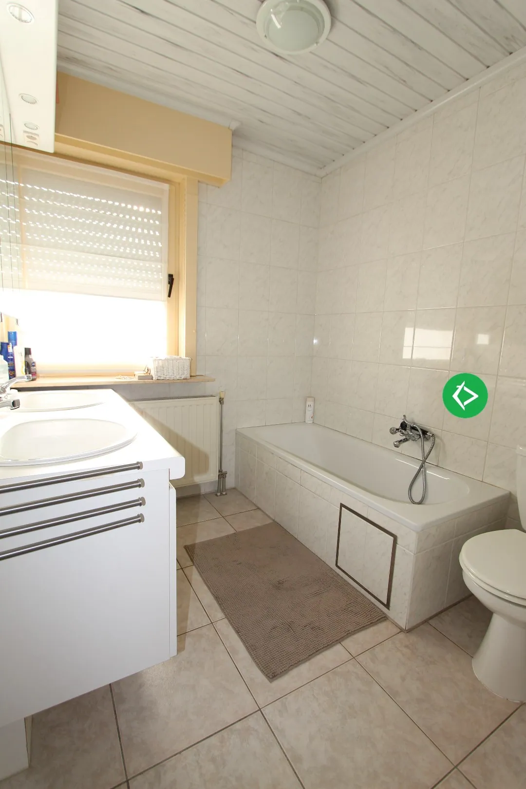 Deze energiezuinige woning is rustig gelegen en bestaat uit: oprit - inkomhal - toilet - zonnige living - recent vernieuwde keuken - wasplaats - douche - berging - ruime garage met zoldering - terras tuin - tuinhuis. Op de eerste verdieping: nachthall - 3 slaapkamers - badkamer - toilet - volledig afgewerkte zolder. Deze woning is instapklaar.