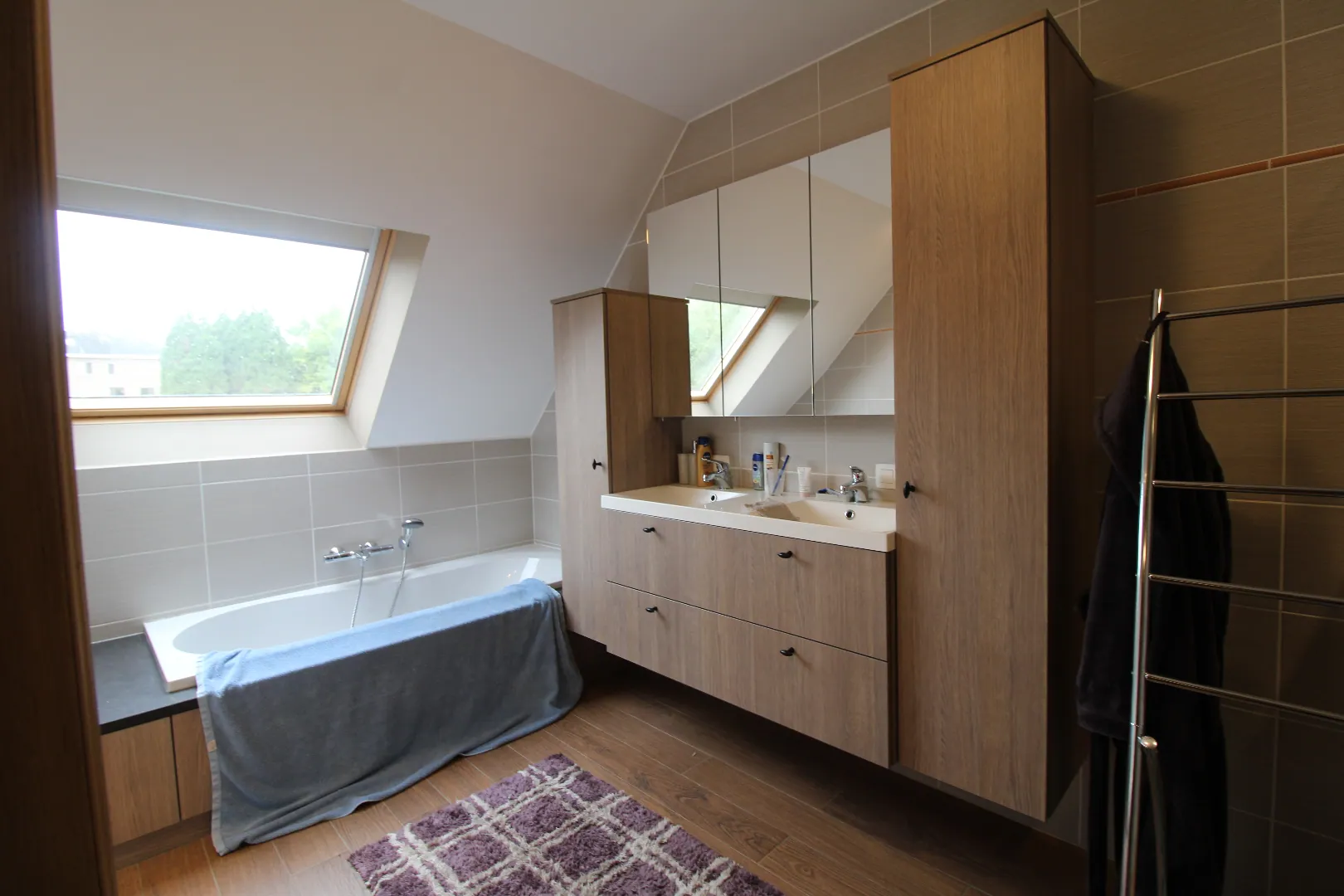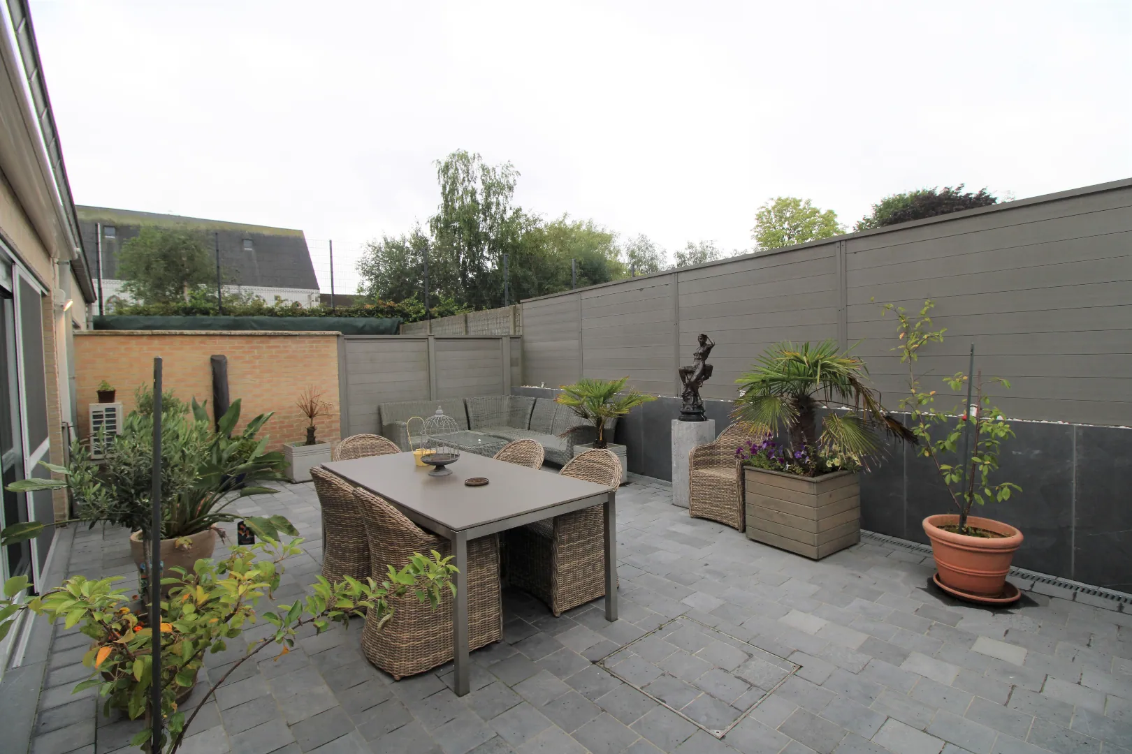 Deze woning bestaat uit: inkomhal - apart toilet - ruime living - open, uitgeruste keuken - berging/washok - 3 ruime slaapkamers - bureau/hobbyruimte - badkamer met instapdouche en ligbad - volledig omheind terras in blauwsteen - garage met sectionale poort.