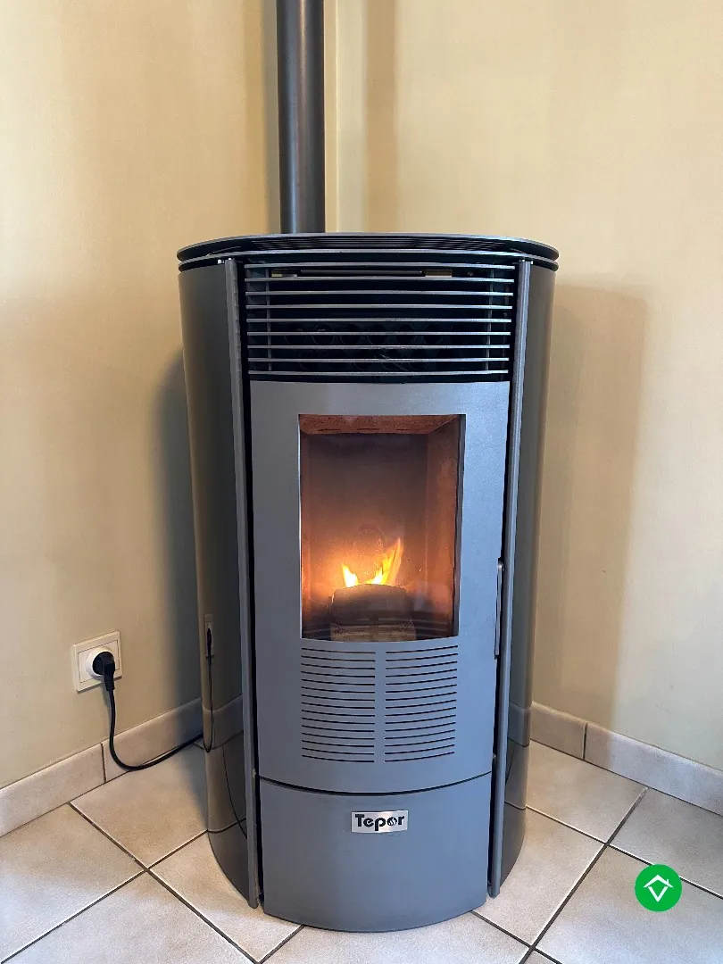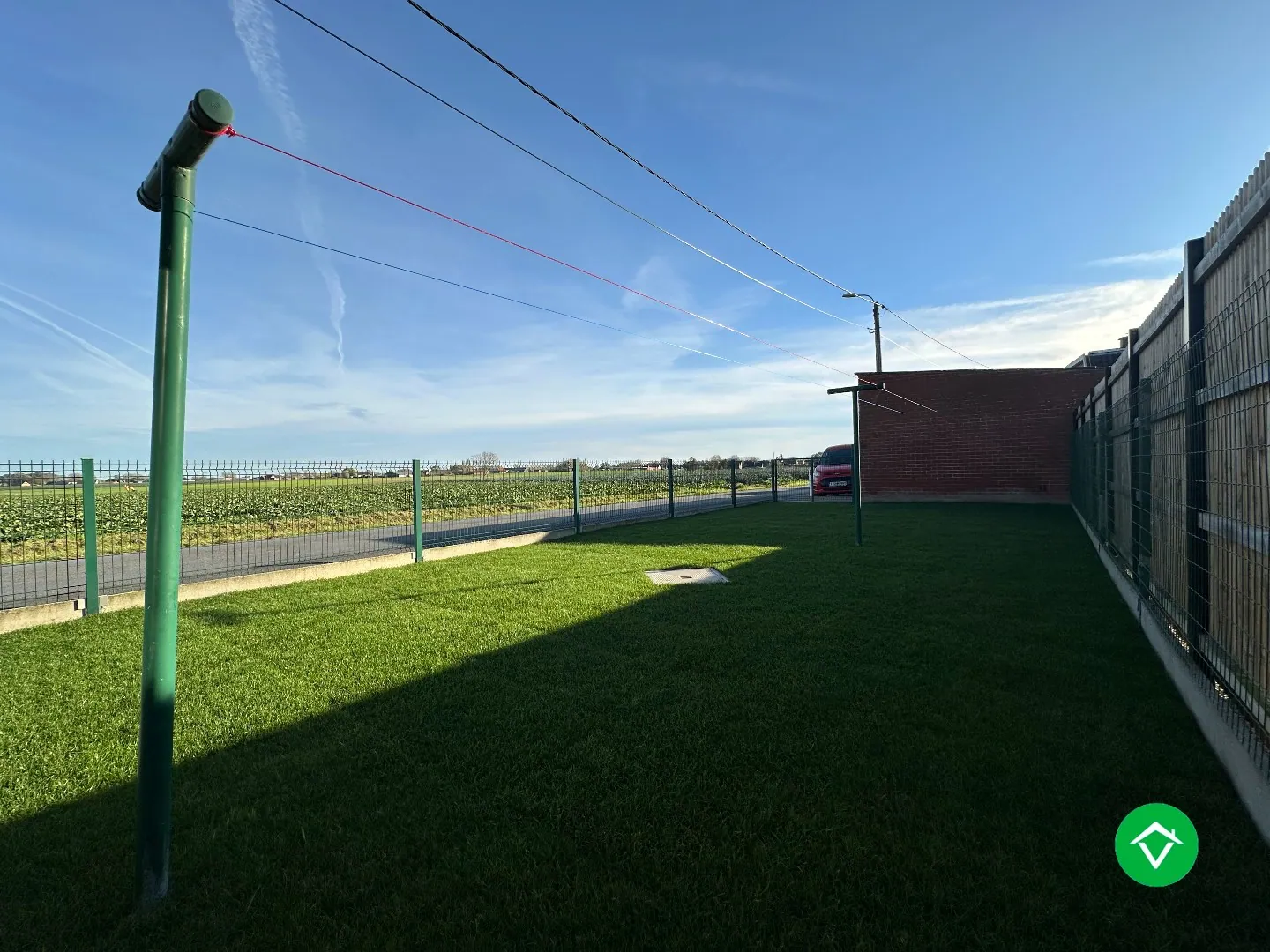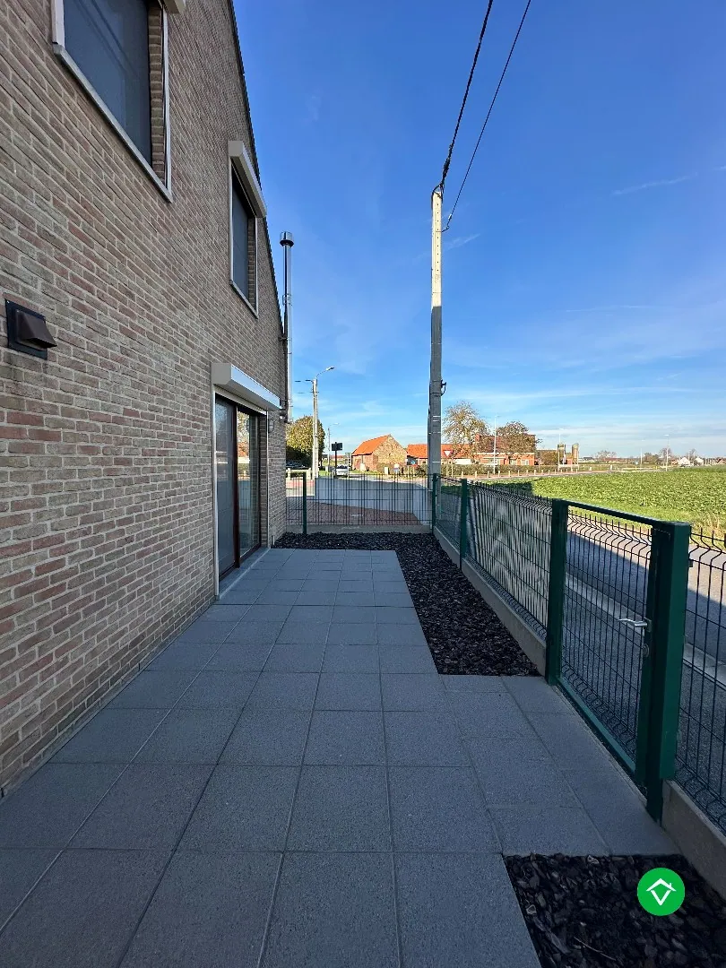 Binnenin vind je een gezellige leefruimte met pelletkachel, een open keuken, een praktische wasruimte, veranda met zicht op de tuin en de achterliggende velden, en een toilet op het gelijkvloers.