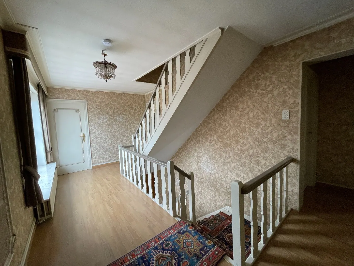 De indeling is als volgt: oprit - voortuin - inkomhal - voorplaats/bureau - berging - toegang tot de kelder - extreem ruime living - aparte keuken - garage - veranda - wasberging - terras - afgesloten tuin - tuinberging - 4 slaapkamers - badkamer - vaste trap naar de zolder (geïsoleerd).