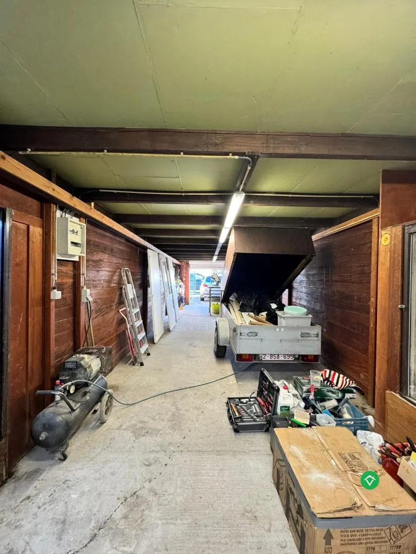 Deze woning bestaat uit: inkomhal - woonkamer - keuken - badkamer - berging - toilet - twee slaapkamers - garage.