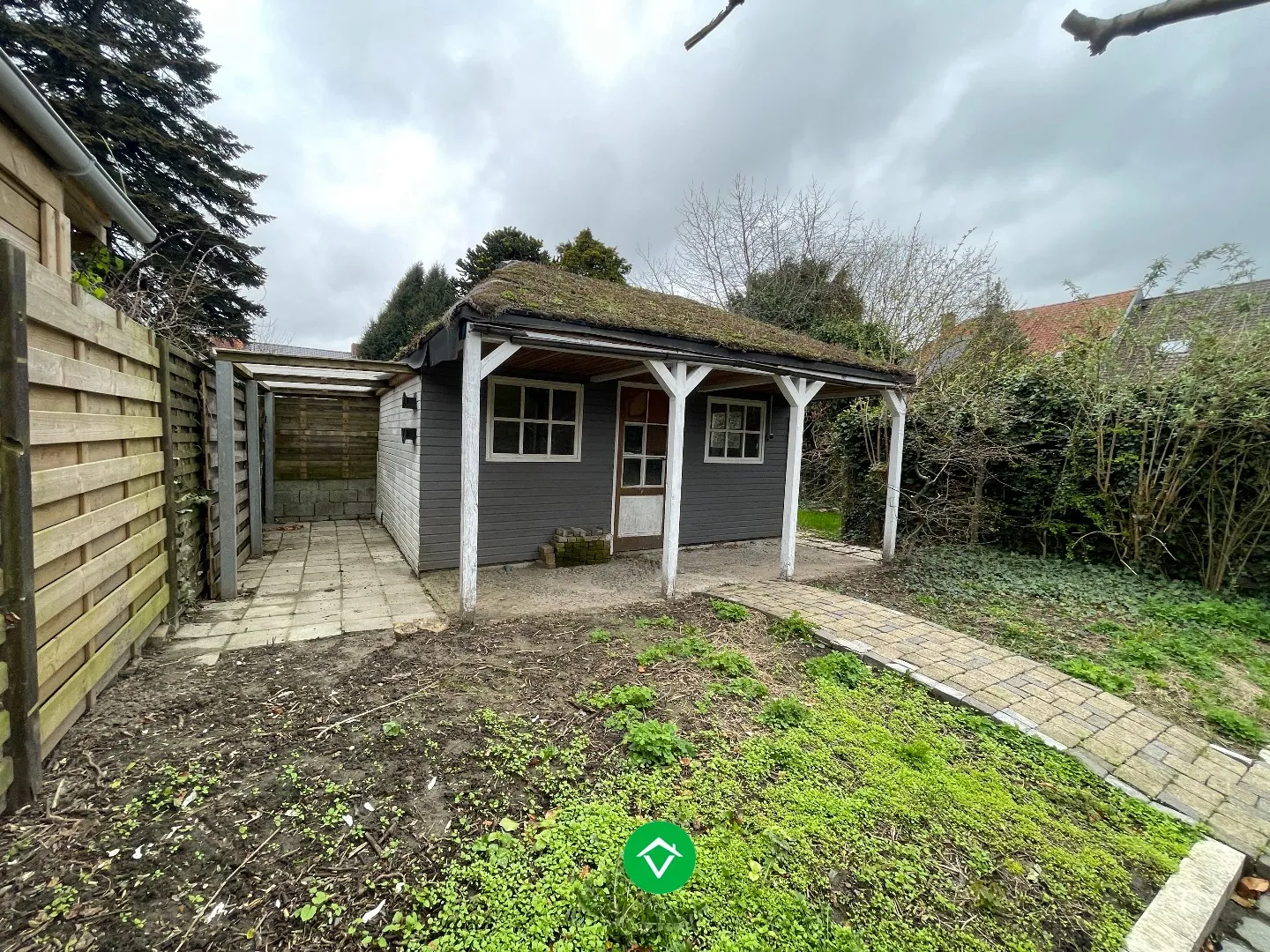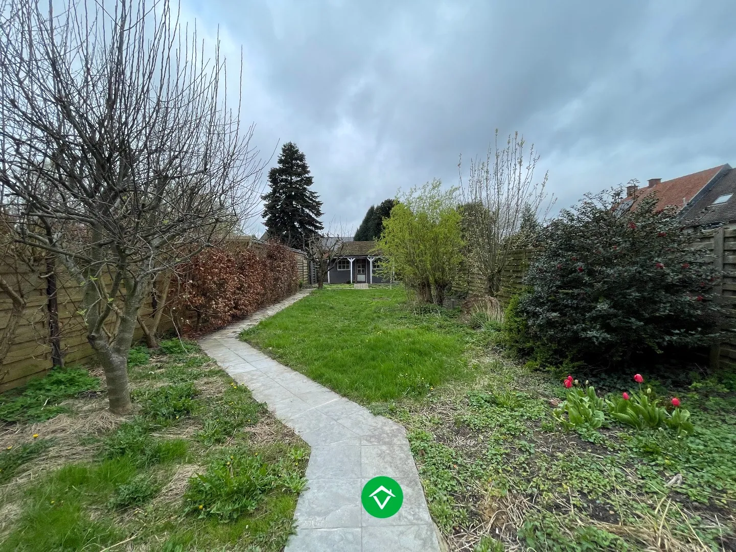 De indeling is als volgt: oprit met voortuin - inkomhal - apart toilet - lichtrijke living - aparte keuken - garage - terras - diepe tuin (met avondzon) - tuinhuis.