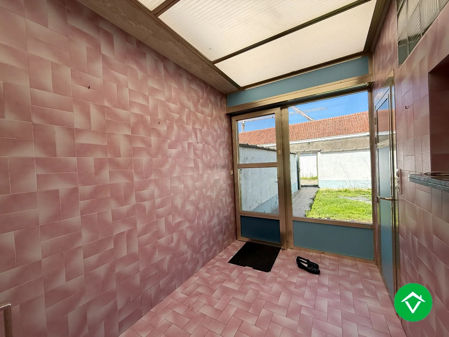 De indeling is als volgt: inkomhal - voorplaats - living - eetplaats - keuken - apart toilet - tuin met achteruitgang en aparte garage in dezelfde straat.
