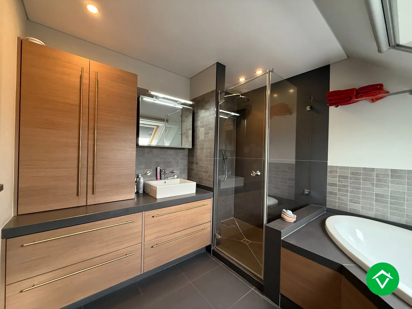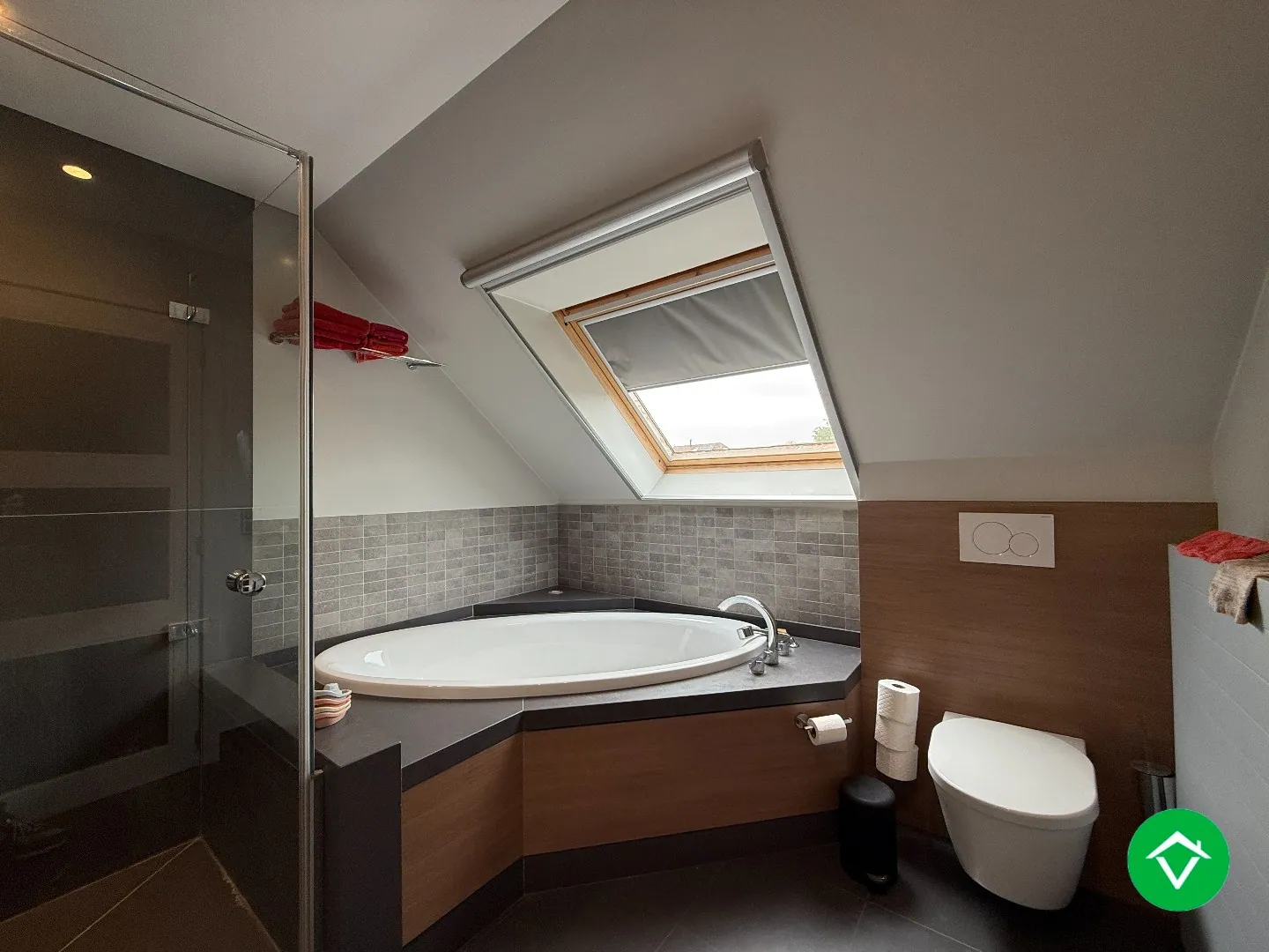 Verdiep 1: 3 volwaardige slaapkamers - terras - berging - badkamer met douche, bad, meubel en toilet.