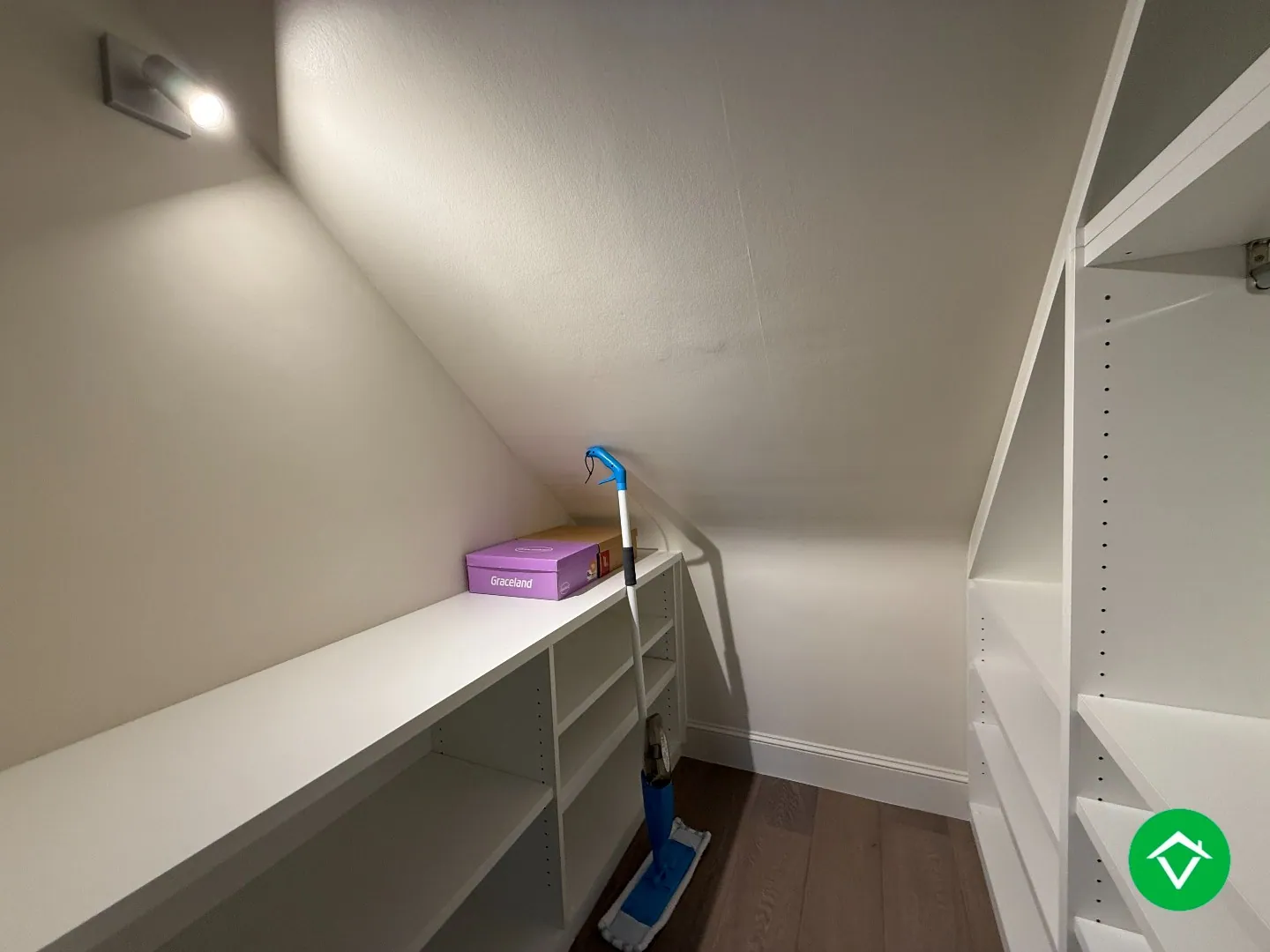Verdiep 2: opbergzolder met meer dan voldoende inbouwkasten en aparte bureau.