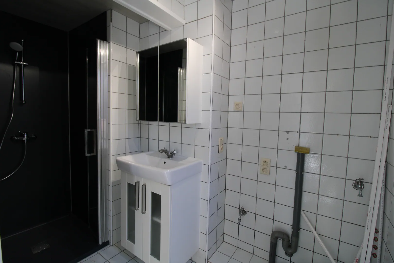 Op het gelijkvloers: inkomhal - toilet - living - keuken - badkamer met aansluiting voor een wasmachine - koer met berging.