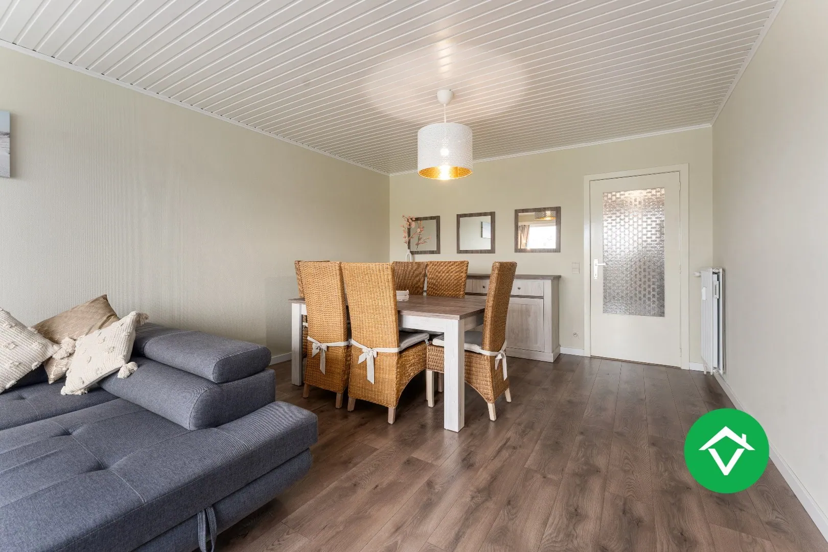 Binnenkomen doet u via de ruime inkomhal met toegang tot de lichtrijke woonkamer voorzien uit zit-en eetgedeelte. Aansluitend aan de woonkamer ligt de geïnstalleerde, goed onderhouden keuken. Zowel via de keuken als de woonkamer hebt u toegang tot het vernieuwd terras. (2023).