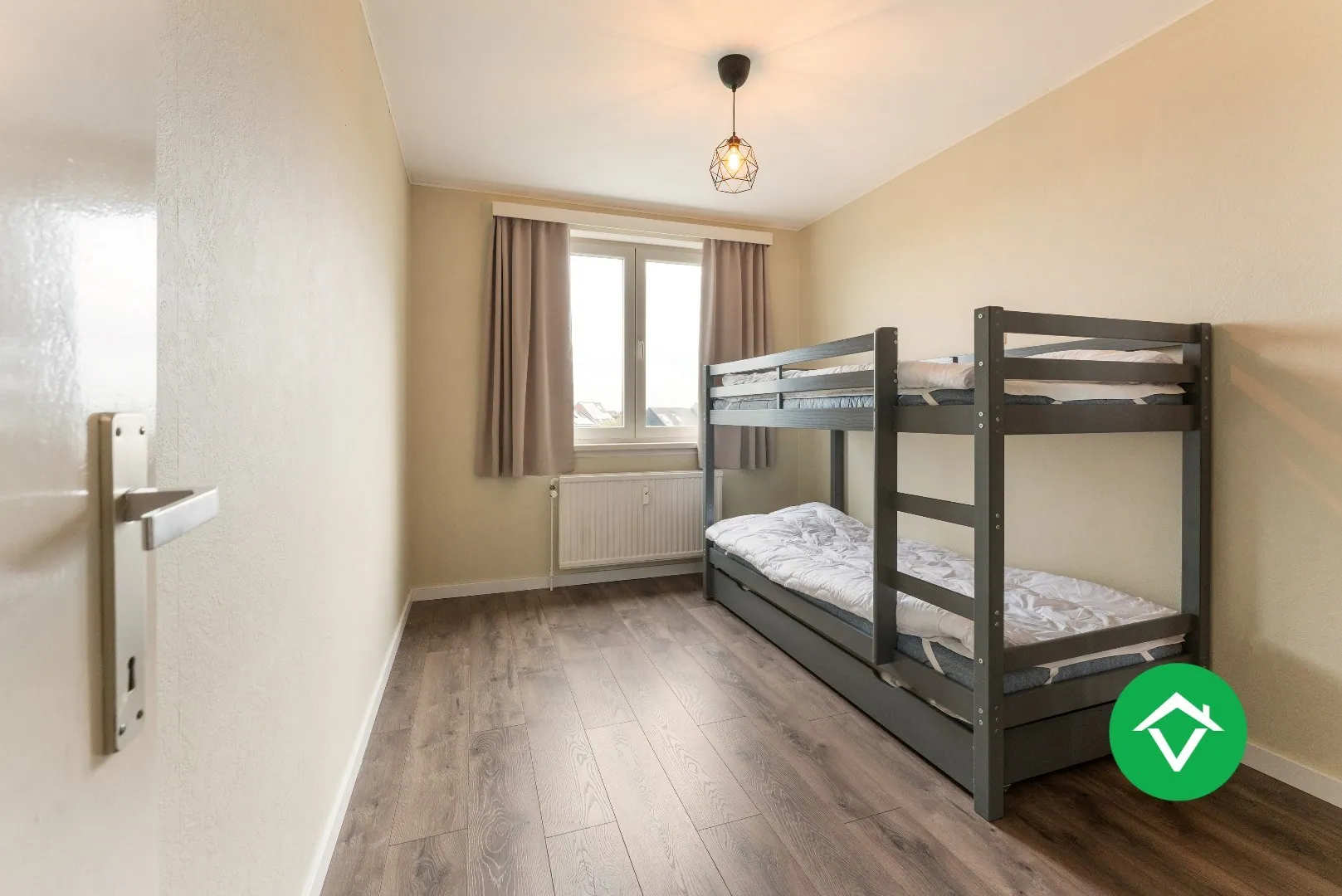 Aan de andere zijde van het appartement hebt u een gebruiksvriendelijke berging, twee ruime slaapkamers met zicht op het groen landschap, een apart toilet en een gerenoveerde badkamer, uitgerust met douchecabine, lavabomeubel en aansluiting voor de wasmachine.