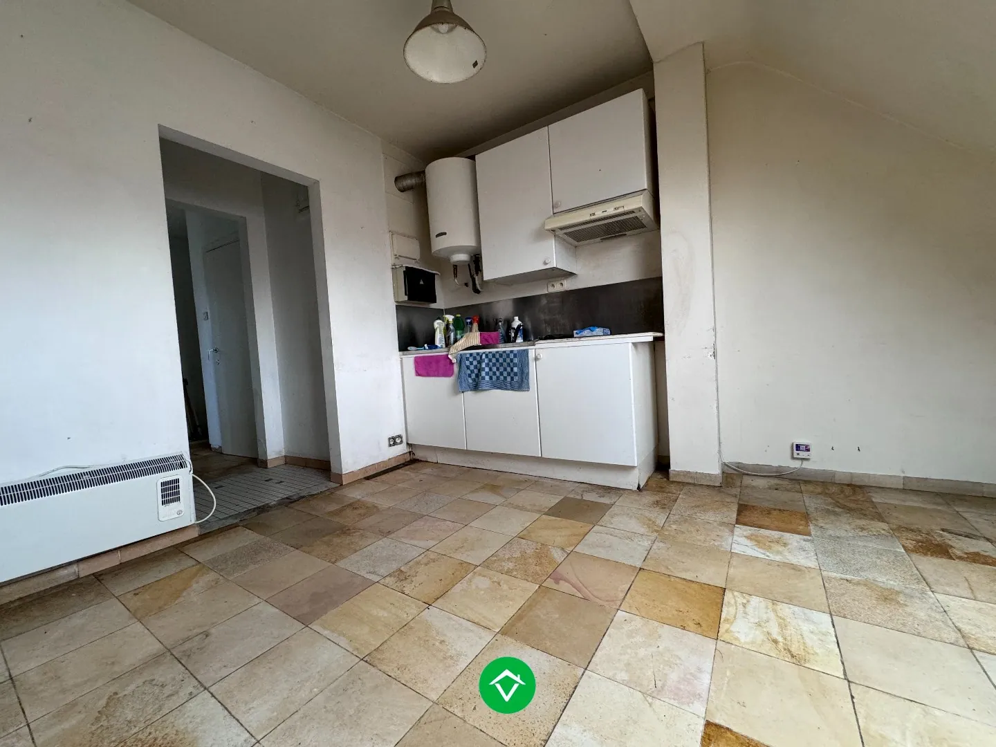 Op het twee verdiep vinden wij een studio ... terug gelegen aan de straatzijde van het gebouw. De studio beschikt over een lichtrijke woonkamer, keuken, badkamer, toilet.