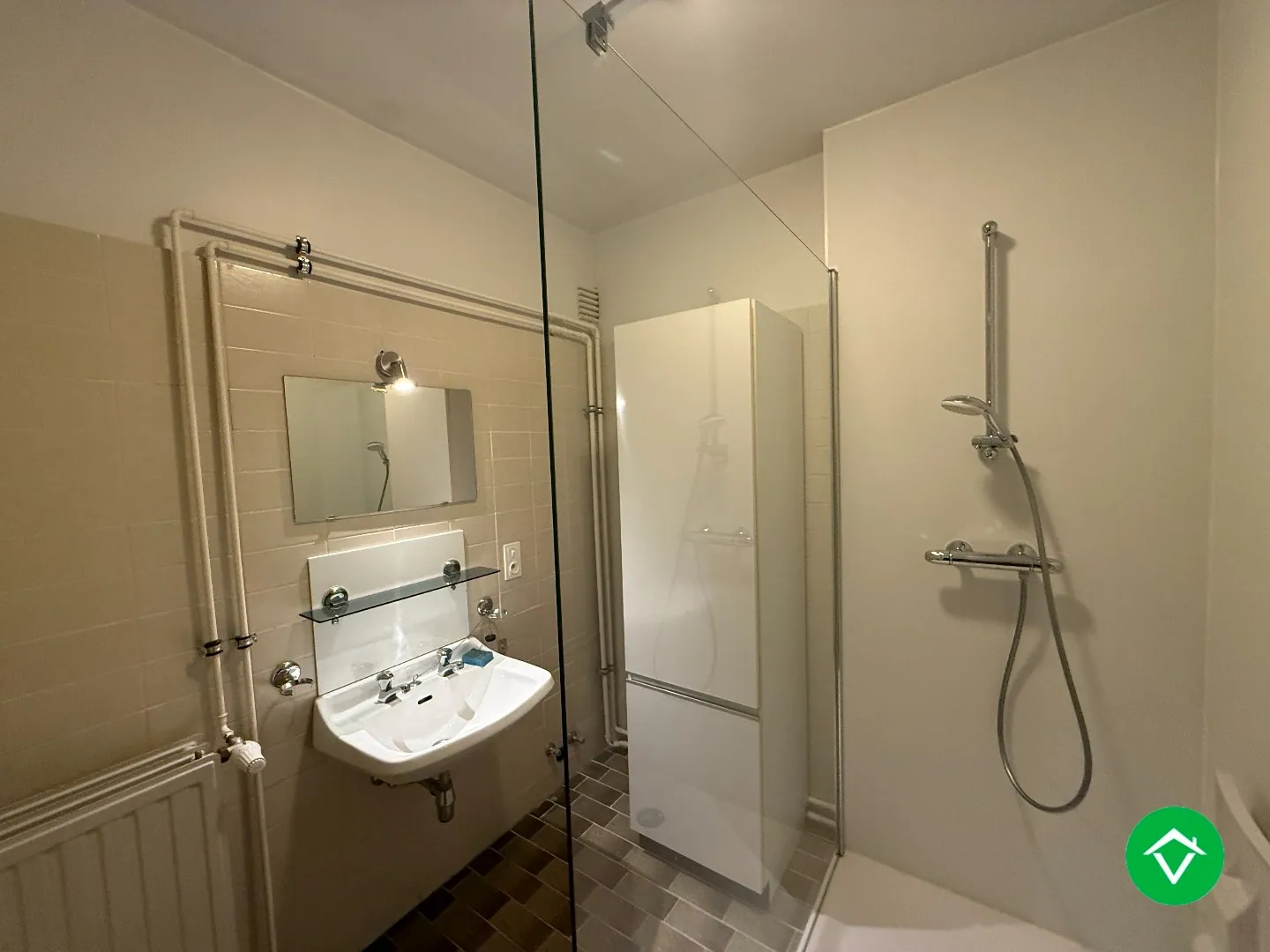 De indeling is als volgt: gemeenschappelijke hal - trap - lift - inkomhal - apart toilet - badkamer met recent vernieuwde douche - wasberging - keuken met aanpalend terras - aparte berging - lichtrijke living met extra terras - twee volwaardige slaapkamers en twee zonnige terrassen. Ook is er een kelderberging inbegrepen (verdiep -1).