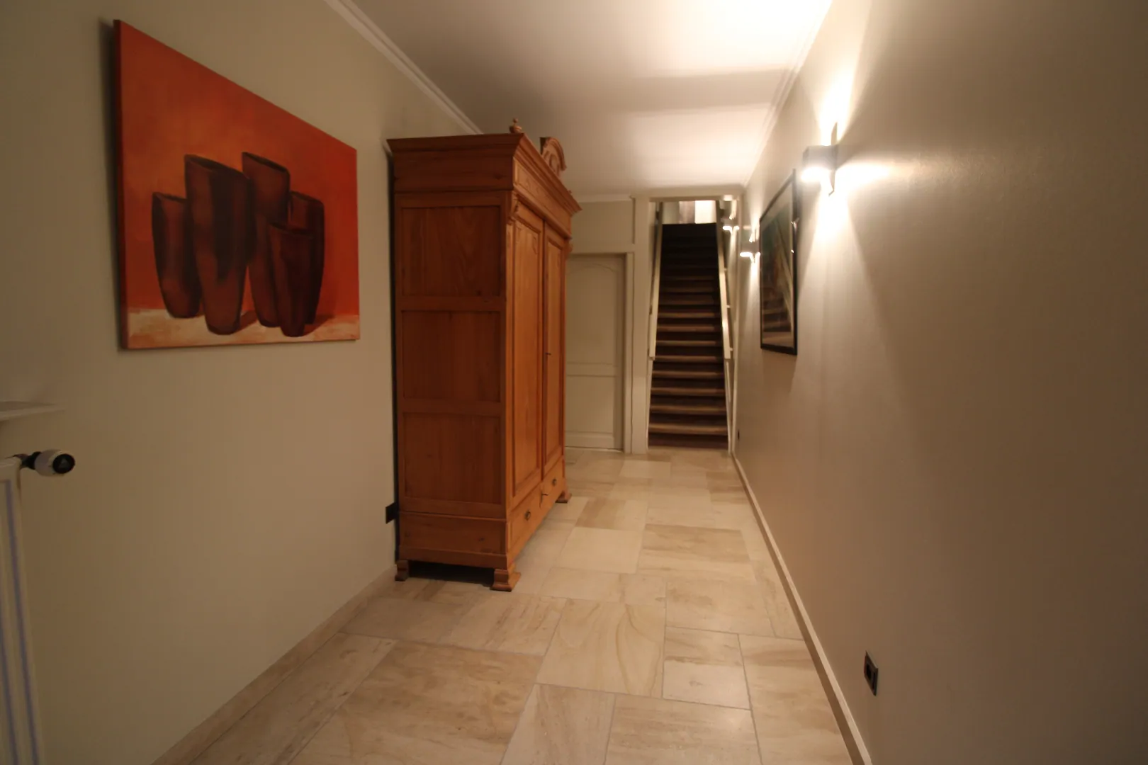 Op de eerste verdieping hebben we: 2 ruime slaapkamers - badkamer met ligbad - toilet - prachtige living - ruime keuken met berging - groot terras aan de voorzijde van de woning - zolder.