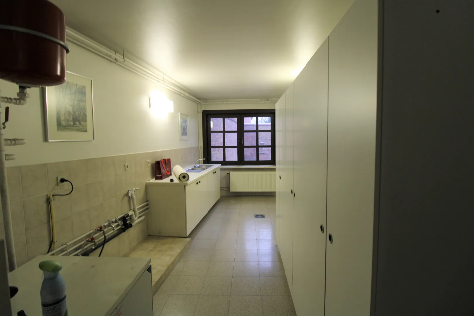 Deze woning beschikt op het gelijkvloers over een prachtige inkomhal - ruime garage waar er zeker 2 wagens kunnen gestationeerd worden. Aanpalende voorraadberging - wasruimte - polyvalente ruimte/slaapkamer - Rustige, zonnige terrastuin.