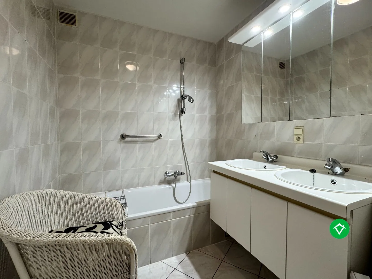 Het appartement bestaat uit een lichtrijke living met aansluitende praktische keuken, een inkomhal met afzonderlijk toilet, berging, badkamer en twee comfortabele slaapkamers. Bovendien beschikt het pand over een extra ondergrondse berging, ideaal voor extra opslagruimte.