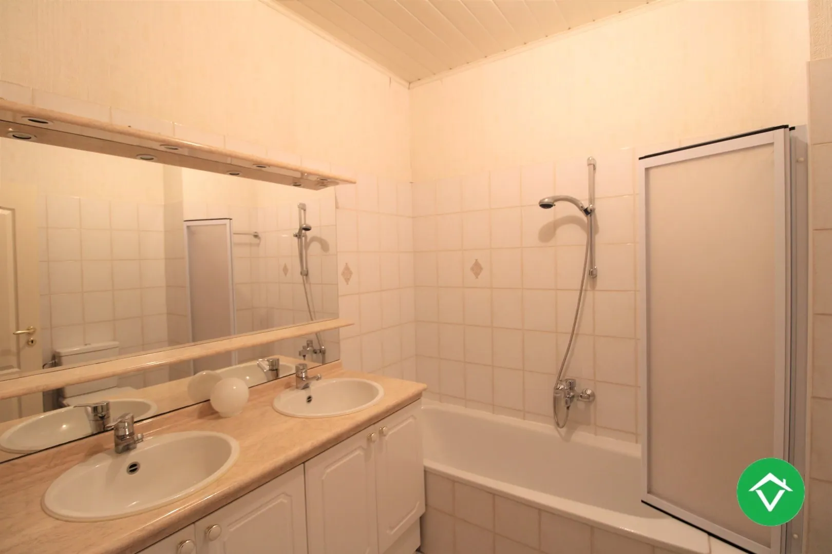 Dit instapklaar appartement is een gelijkvloers appartement in een rustige residentie en bestaat uit: inkomhal - grote living - volledig ingerichte keuken - berging - wasplaats - badkamer met ligbad, dubbele lavabo en toilet - 2 slaapkamers - terras - afgesloten garagebox.