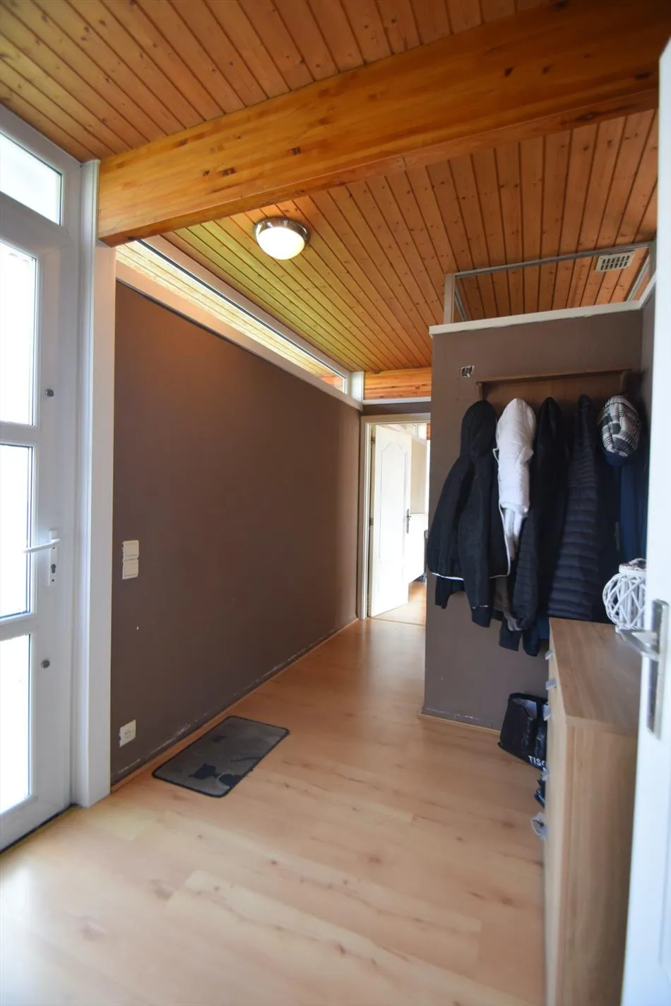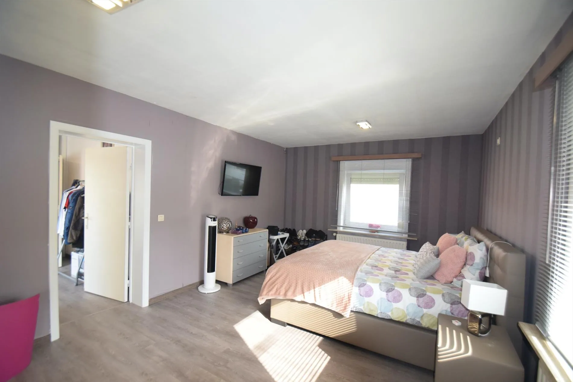 Alles bevindt zich op gelijkvloers, wat heel praktisch wonen is. Deze verzorgde, doch licht op te frissen bungalow bestaat uit een inkom/vestiaire met gastentoilet, een mooie leefruimte (L-vormig met eet- en zitplaats met inbouwcassette), een veranda-aanbouw, een diepe garage/wasplaats, een volledige ingerichte keuken met geriefelijke berging, en verder het slaapgedeelte achteraan die 2 slaapkamers telt, een badkamer (douche, toilet en dubbele wastafel), een dressing-tussenkamer en tenslotte een erg ruime master bedroom. CV-installatie (condensatieketel op aardgas) werd vernieuwd in 2019. Ook dan werd de elektriciteit conform gekeurd, voor de plaatsing van 10 zonnepanelen (met een capaciteit van 3200 WP, die een normaal gezinsverbruik dekt). De zongerichte tuin is leuk opgevat, met achteraan nog een aangename terrashoek, een tuinhuis, en langszij ook nog een stukje graveltuin waar zich ook een smalle carport bevindt. Door de hoekligging heeft de tuin een aangename mngeslotenheid en geniet je er van de volle privacy. Deze ...