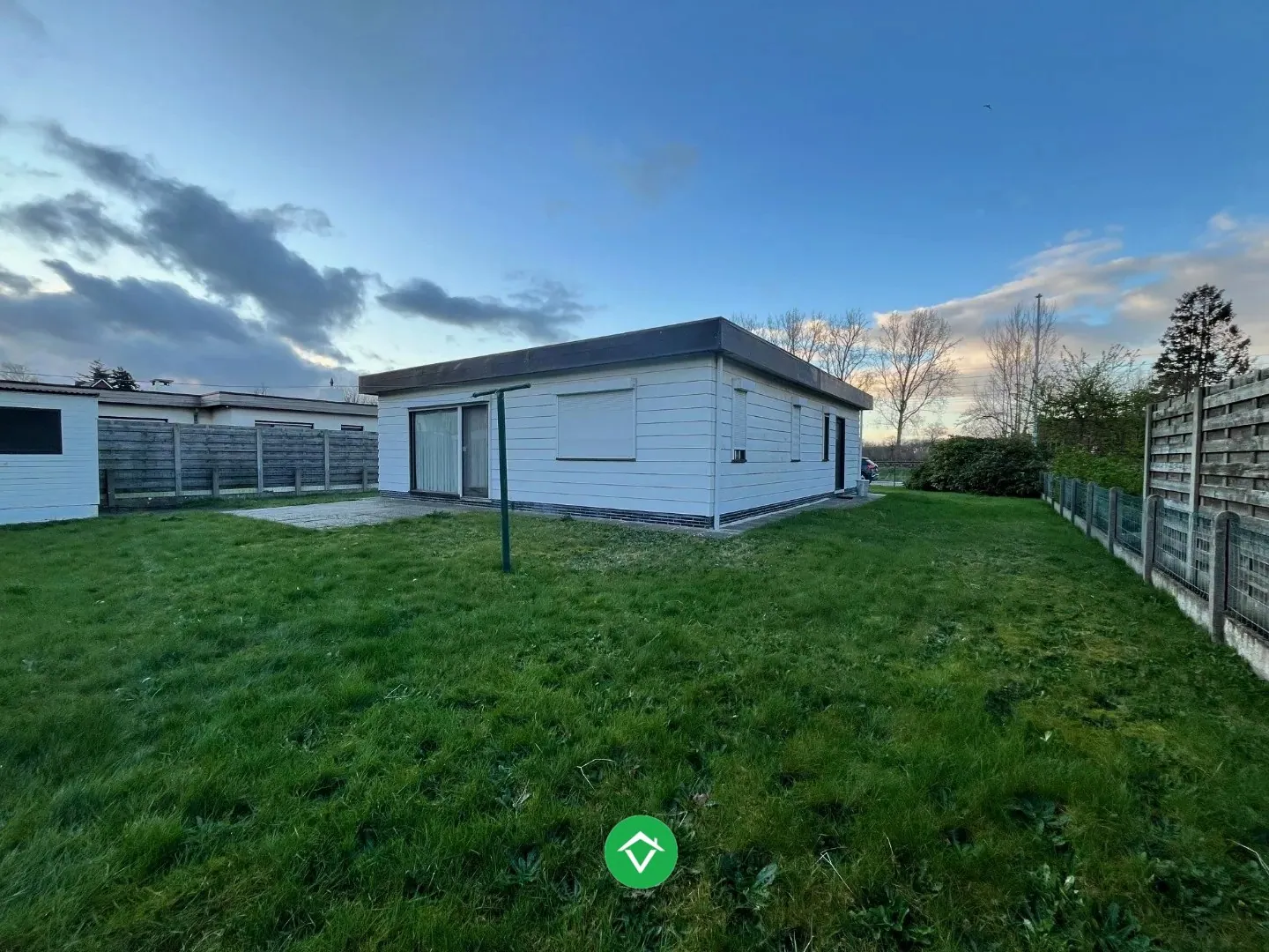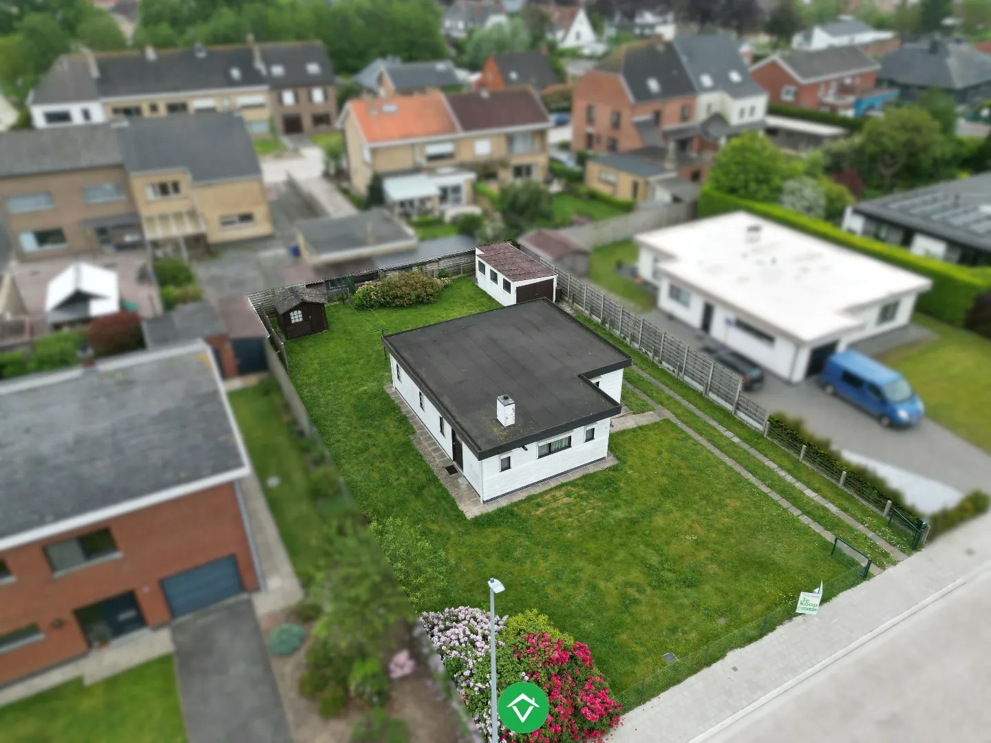 Deze alleenstaande gelijkvloerswoning bevindt zich op een mooi perceel van ruim 6 are, met een zuidgerichte achtertuin, een lange oprit, een garageconstructie achteraan, en een tuinhuis. Het biedt aan de voorzijde een open zicht naar de spoorweg met een prachtig landelijk zicht palend aan de Oostendse Vaart. De bungalow heeft een inkom met vestiaire en toilet, een keuken, een wasplaats, een leefruimte, een badkamer en een erg ruime slaapkamer. Energetische renovatieplicht, om binnen de 5 jaar de score op minimaal klasse D te brengen. CV op aardgas, elektriciteit wellicht niet conform. Het kan best louter als bouwgrond beschouwd worden (waar nu op gewaardeerd werd), met vrij soepele bouwvoorschriften voor open bebouwing, tot maximaal 200 m² bebouwbaar, 2 bouwlagen, en vrije dakvorm (plat, hellend of combinatie). Wilt men een kwalitatieve open bebouwing realiseren, met behoud van voldoende (zongerichte) achtertuin, dan kan gemakkelijk een 4 slaapkamerwoning gebouwd worden, met een inpandige garage.